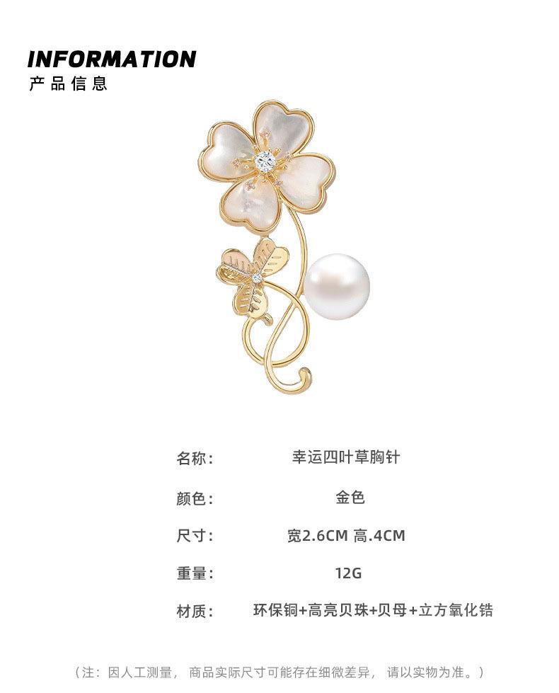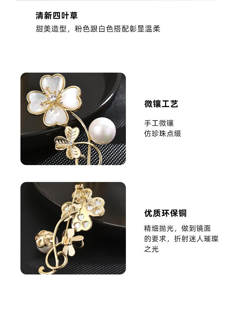 Broche elegante de trébol fresco, temperamento femenino, diseño de moda, ropa fija de lujo, ramillete, accesorios al por mayor