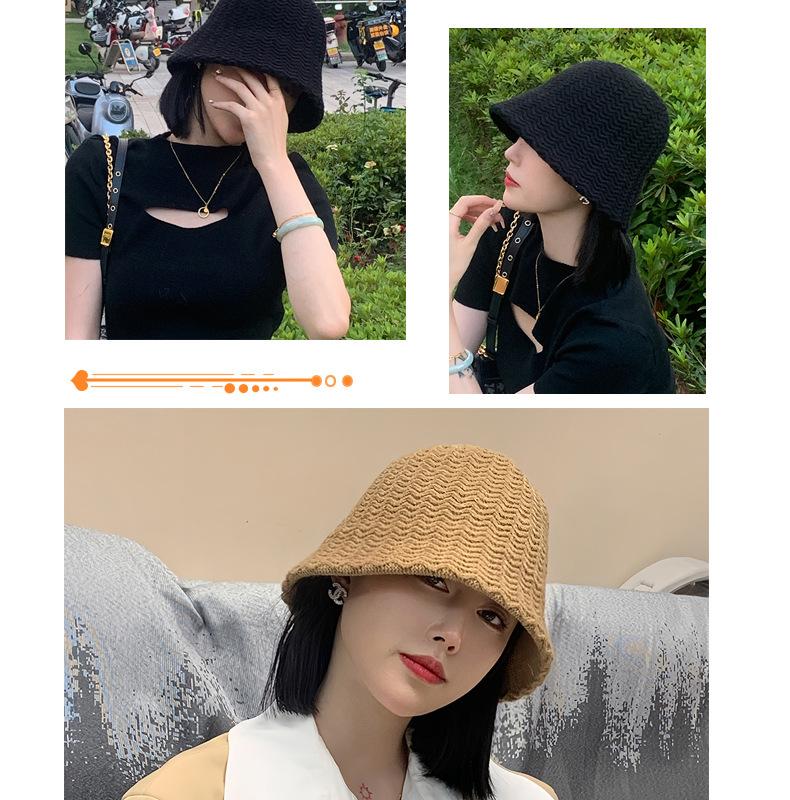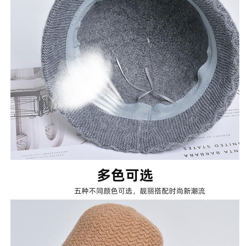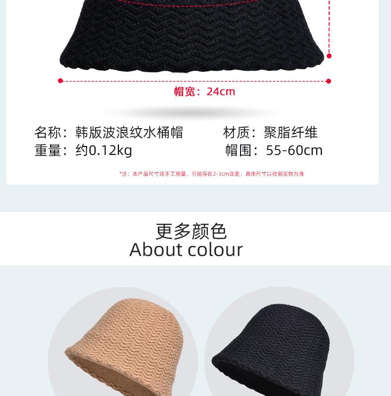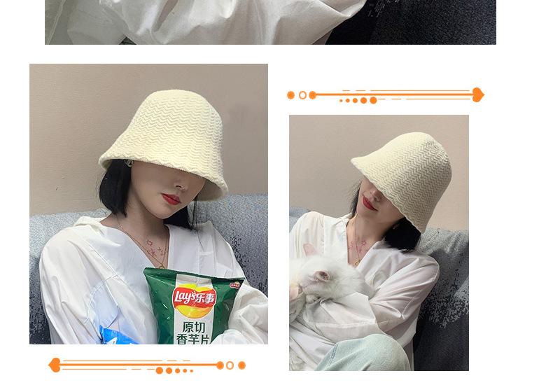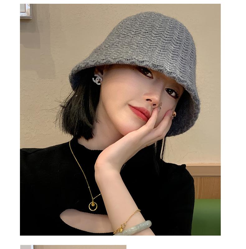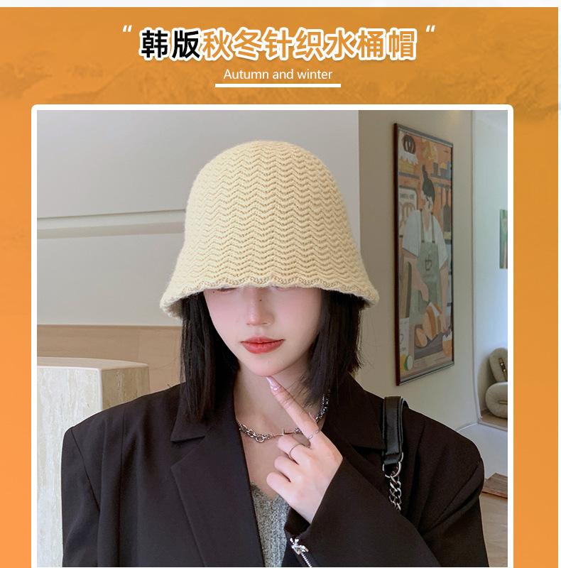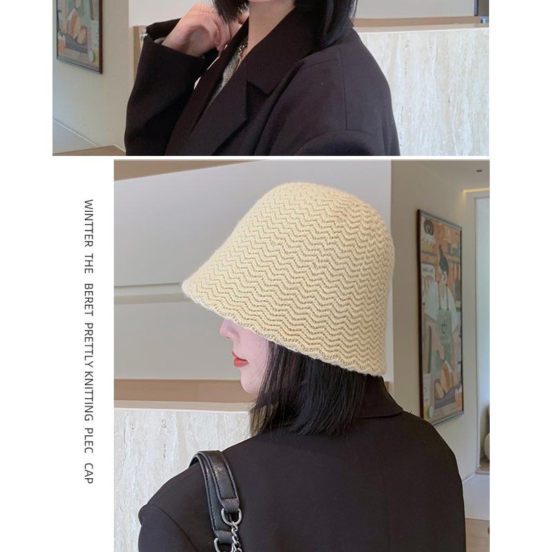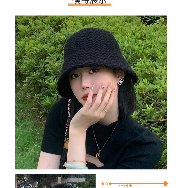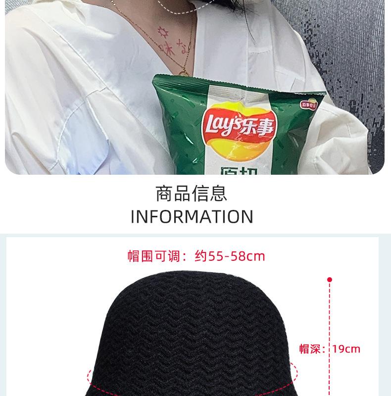 8299 Sombrero de pescador pequeño estilo coreano que hace que la cara se vea pequeña, casual para otoño e invierno, combina con todo, sombrero de cubo que cubre la cara, sombrero de cubo de punto moderno con patrón de ondas