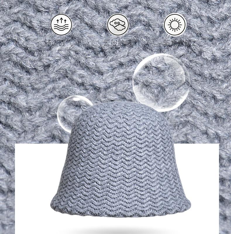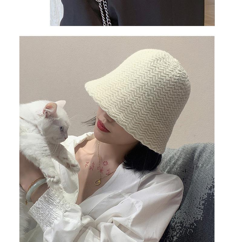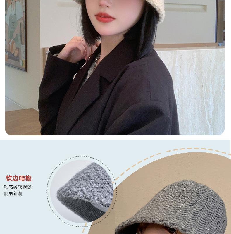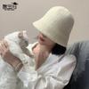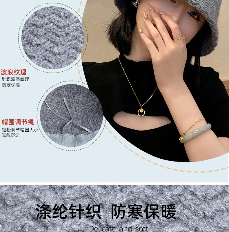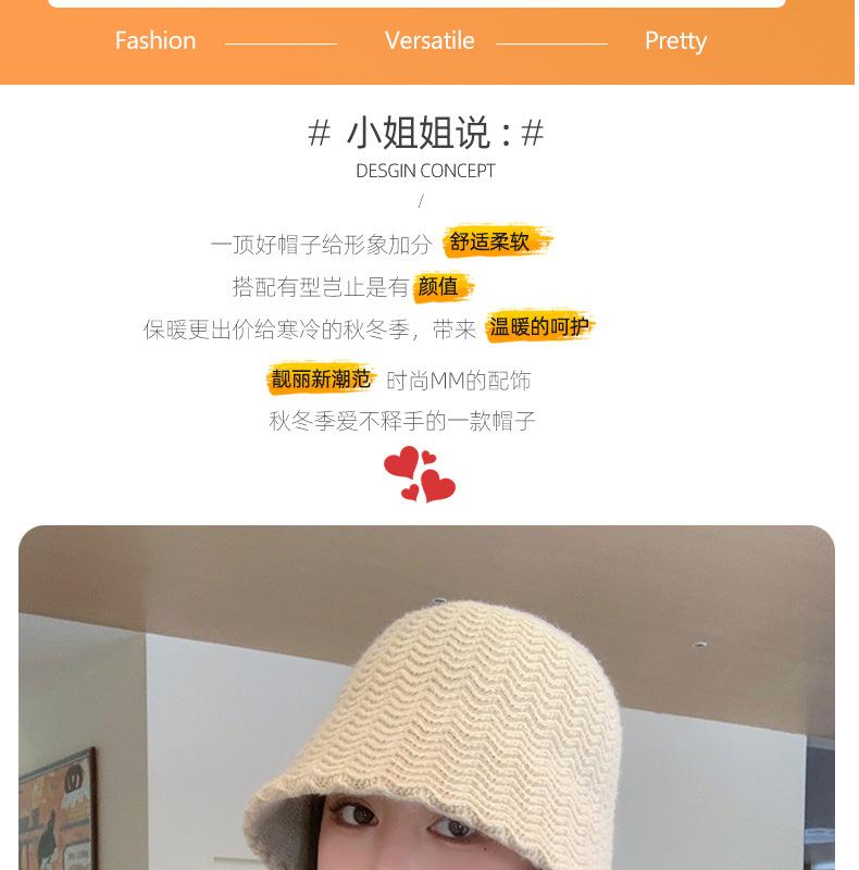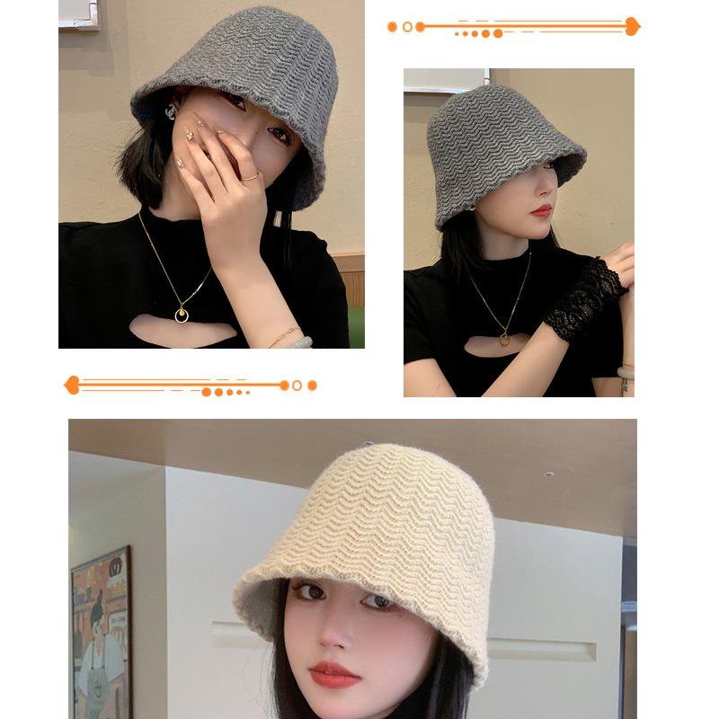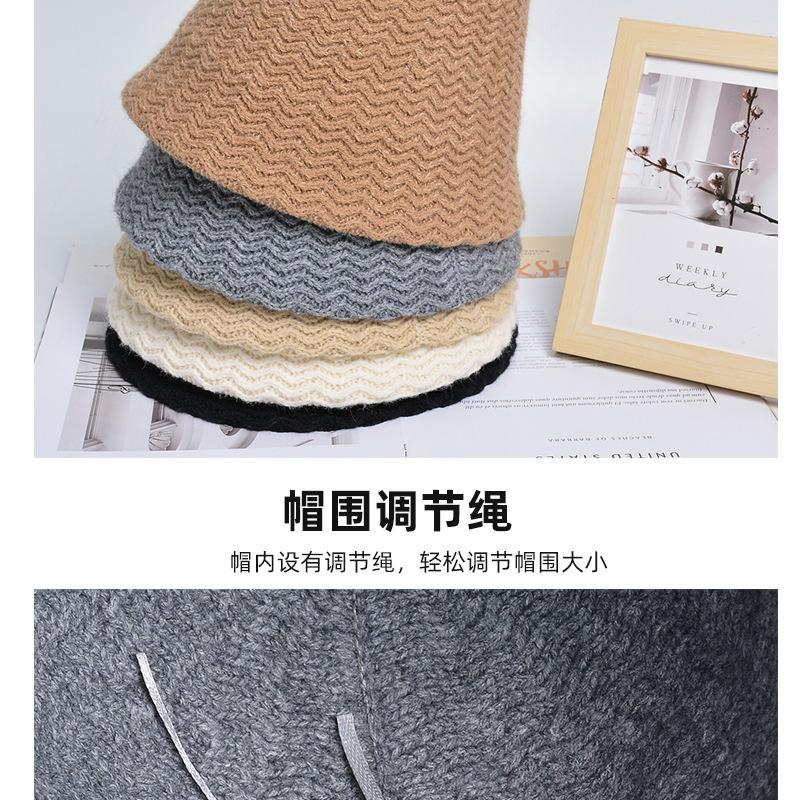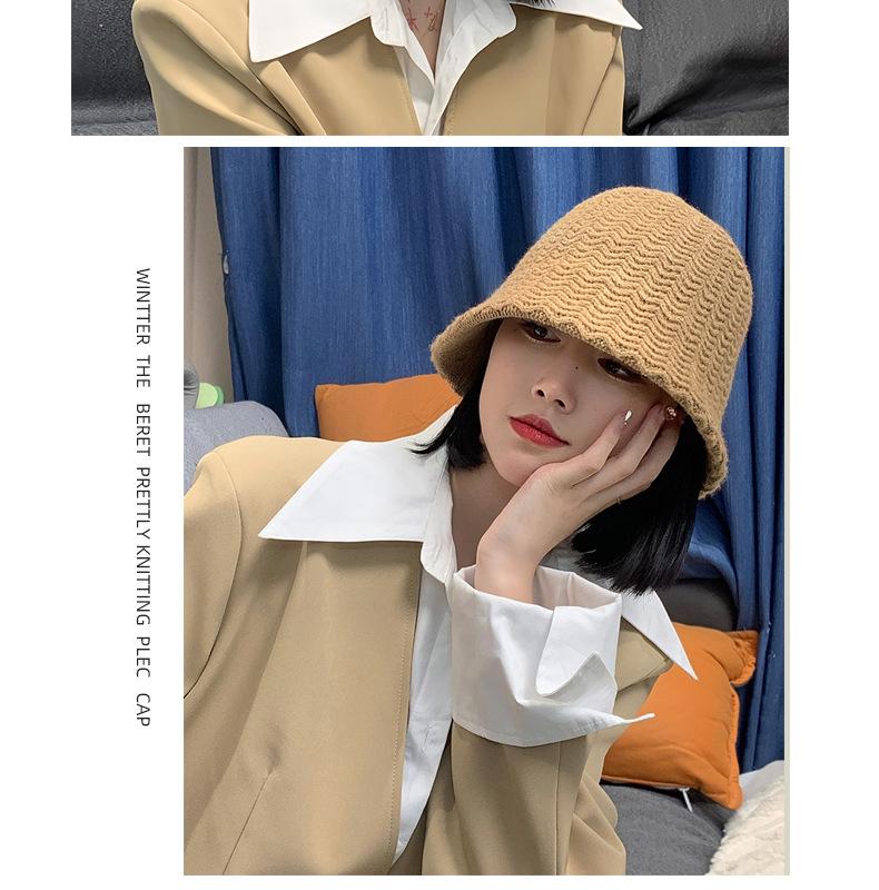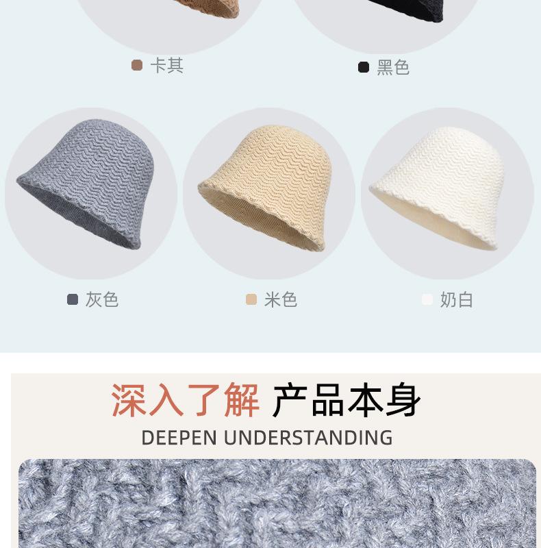 8299 Sombrero de pescador pequeño estilo coreano que hace que la cara se vea pequeña, casual para otoño e invierno, combina con todo, sombrero de cubo que cubre la cara, sombrero de cubo de punto moderno con patrón de ondas