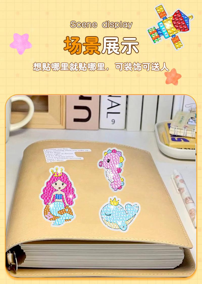 Pintura de diamantes personalizada de fábrica, pegatinas de diamantes creativas hechas a mano para niños, pegatinas casuales de princesas de dibujos animados de animales