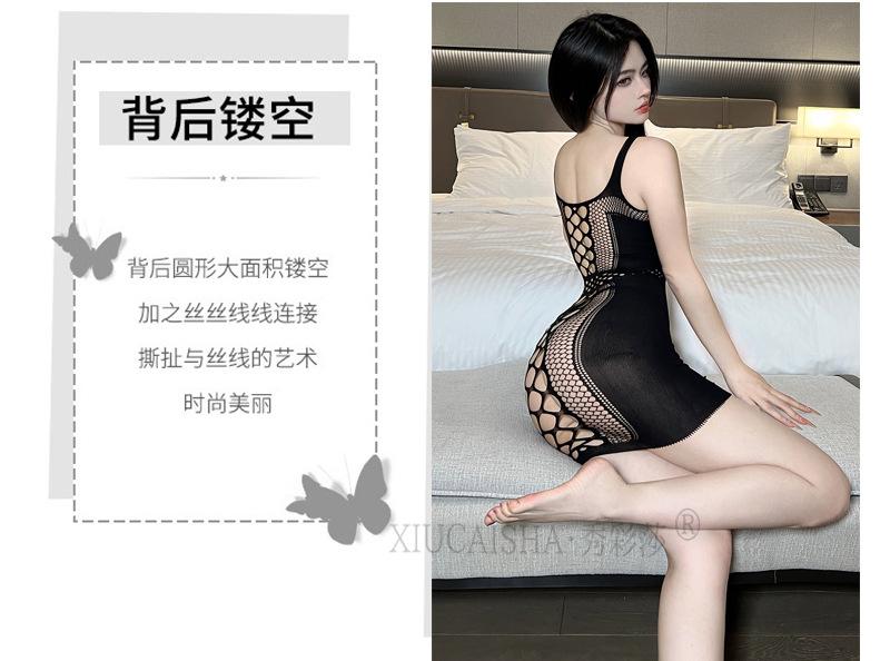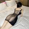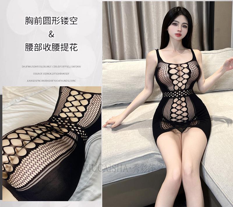 Lencería sexy de seda negra, uniforme sexy, medias de una pieza, tentación, pijamas de talla grande sin pasión.