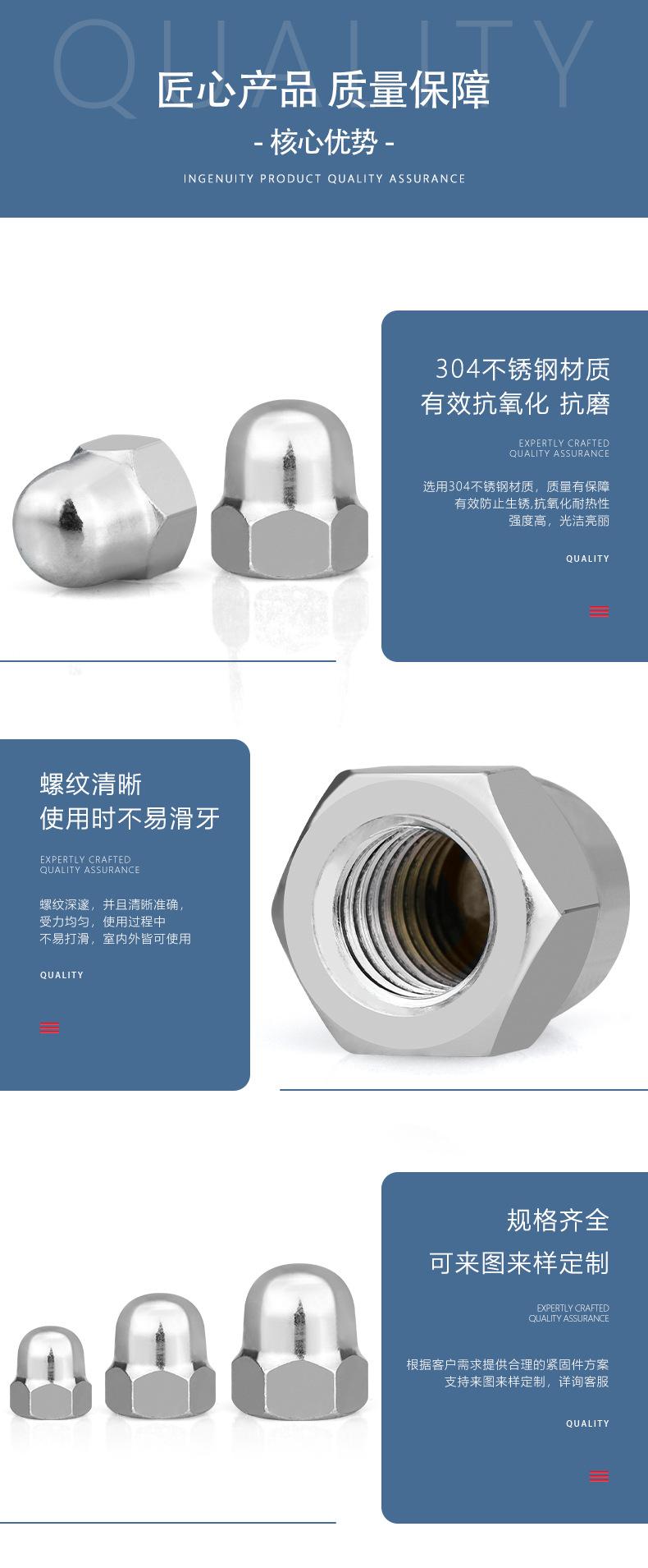 Tuerca de Capuchón de Acero Inoxidable 304 M3-M20 Tuerca Tipo Capuchón Acero al Carbono Hexagonal Tuerca de Capuchón Integrada Tuerca de Cabeza de Bola Diseño Antiaflojamiento