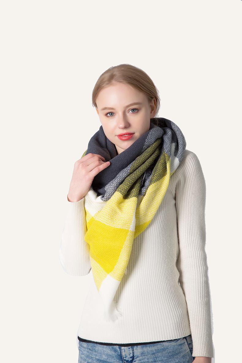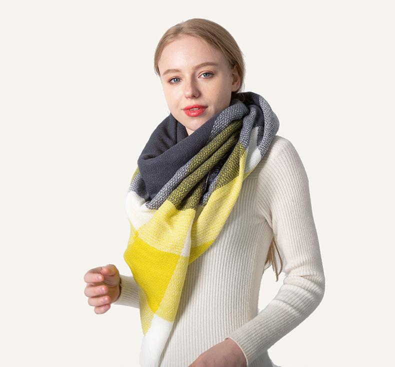 Nuevo otoño e invierno europeo y americano amarillo gris imitación cachemira bufanda cuadrada de cuadros grandes chal grande de doble cara para mujer fabricante Tonglu