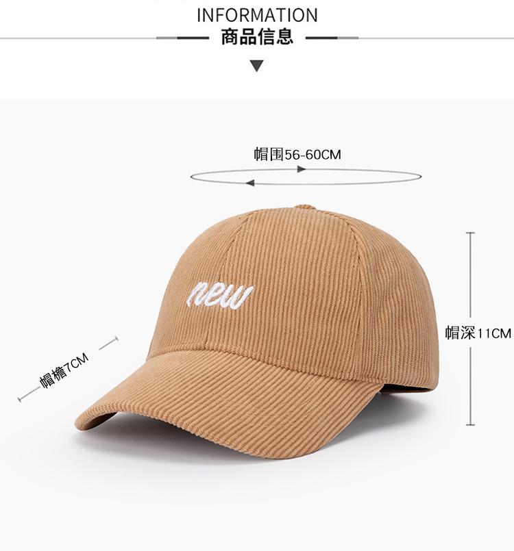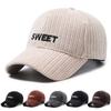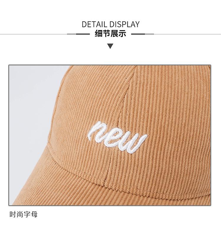 Otoño e invierno Nueva gorra con letras bordadas retro gorra de béisbol de pana para exteriores cálida para mujer casual combinable gorra con visera para hombre
