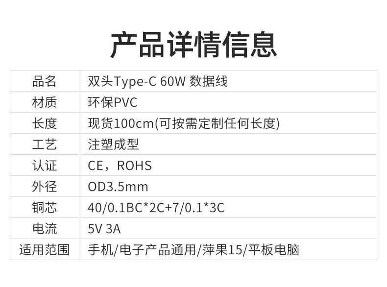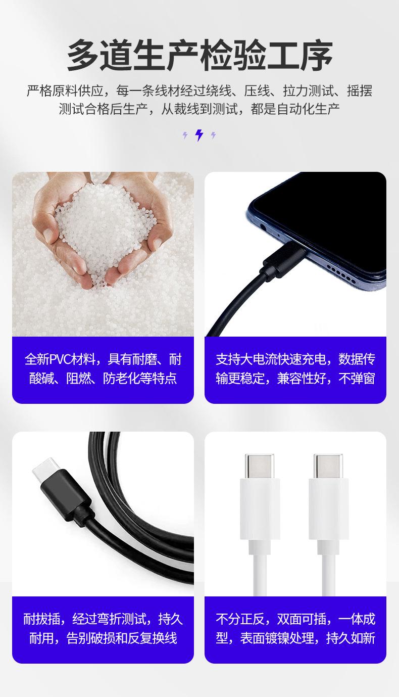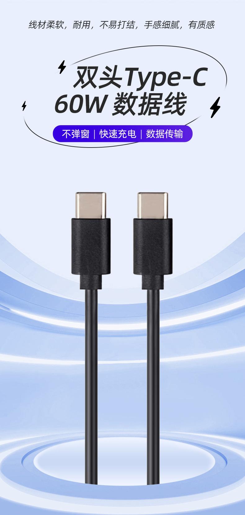 Cable de datos tipo C de doble cabezal, carga rápida de 60 W, CtoC, para Samsung, Apple, iPhone 15