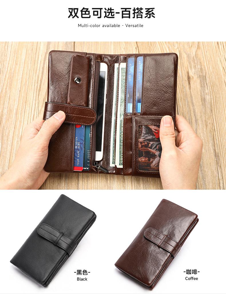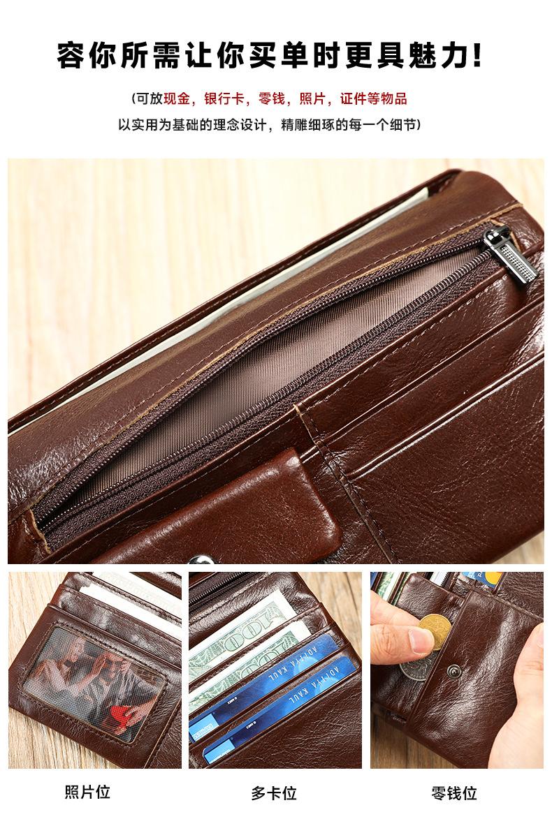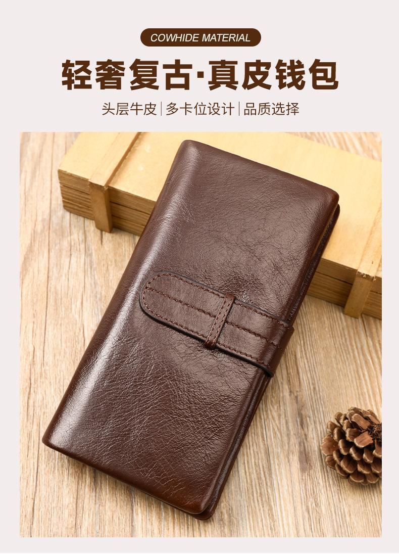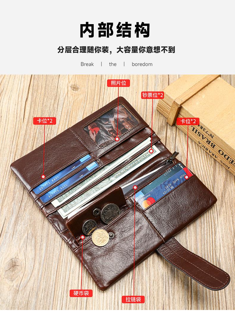 Cartera de hombre con dos bolsillos, billetera larga con ranuras para múltiples tarjetas, bolso de mano de cuero genuino para hombre, bolso de mano, negocio de suministro transfronterizo