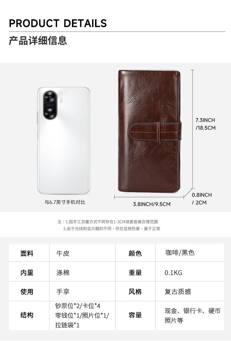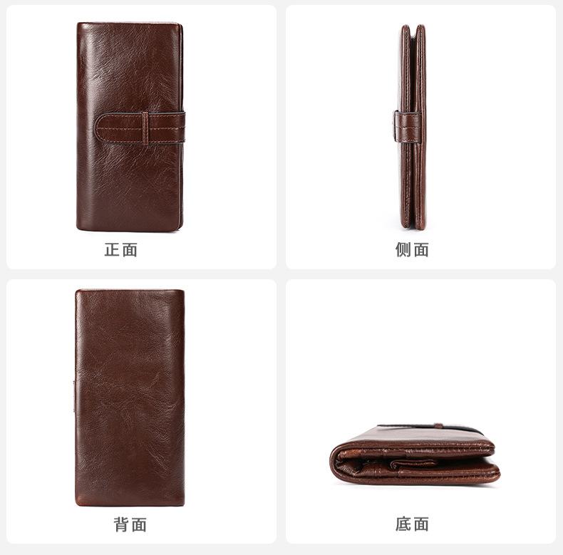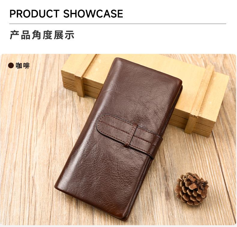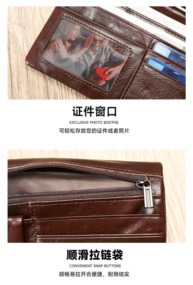 Cartera de hombre con dos bolsillos, billetera larga con ranuras para múltiples tarjetas, bolso de mano de cuero genuino para hombre, bolso de mano, negocio de suministro transfronterizo