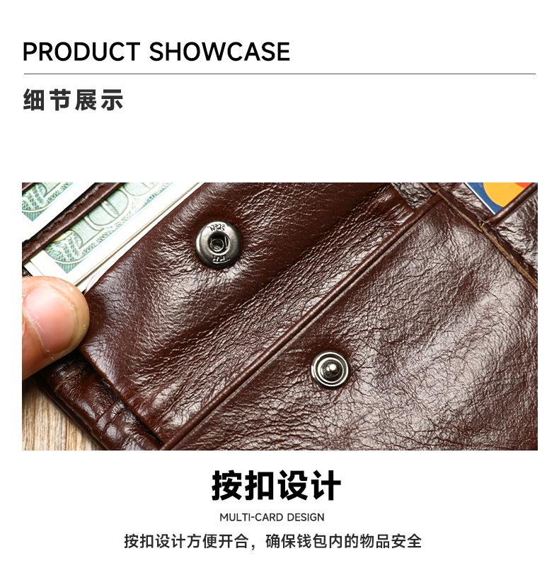 Cartera de piel de vaca hecha a mano para hombre, primera capa de cuero genuino, corta, antirrobo, con cepillo, gran capacidad, moderna, de comercio exterior, al por mayor