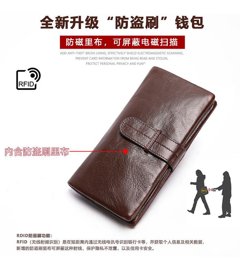 Cartera para hombre con cepillo antirrobo RFID, versión coreana, primera capa de piel de vaca, bolso de mano largo, bolso para teléfono móvil, venta directa de fábrica 9043