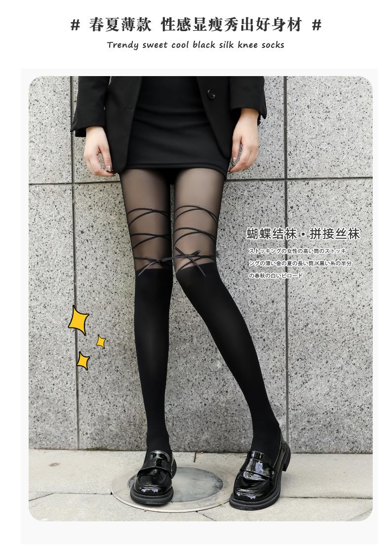 Medias japonesas con lazo cosido de primavera y otoño, calcetines falsos hasta el muslo jk de color sólido, medias falsas de tubo alto, venta al por mayor