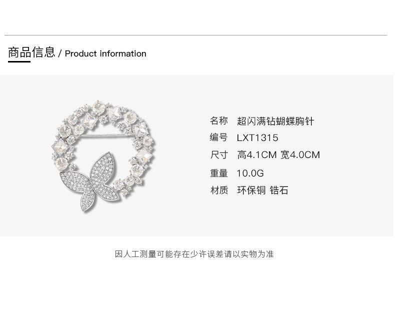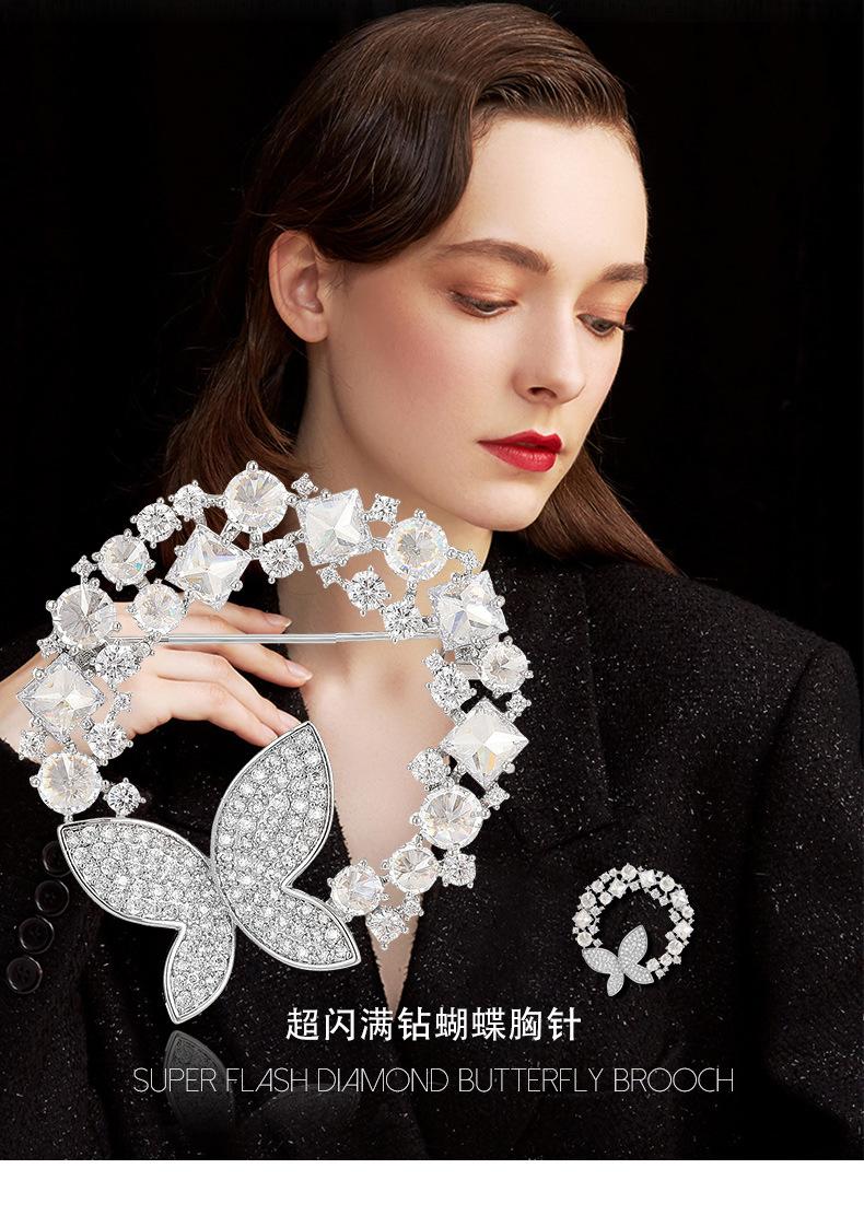 Broche de Mariposa de Zirconia de Diamante Completo Accesorios para Cárdigan de Traje de Mujer Diseño Fijo Corsage de Alta Gama Nicho Simple y Versátil