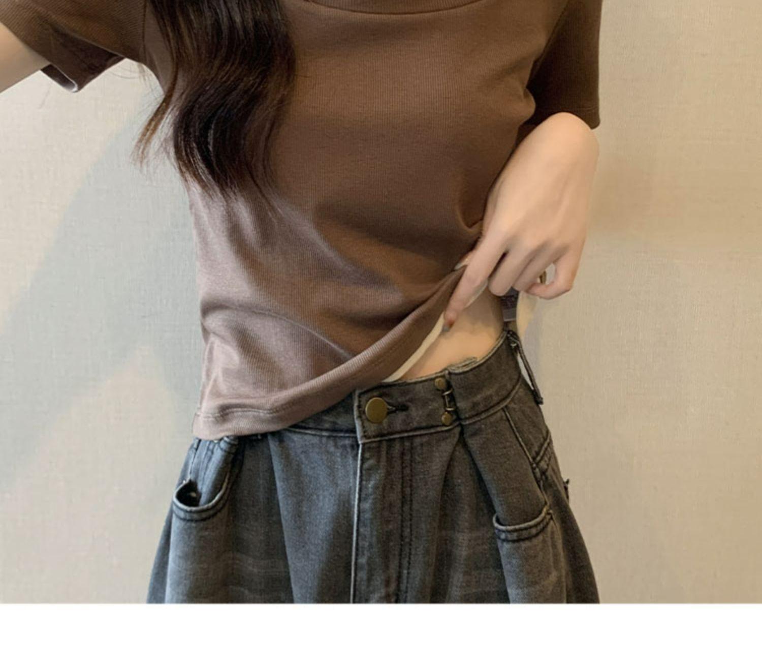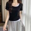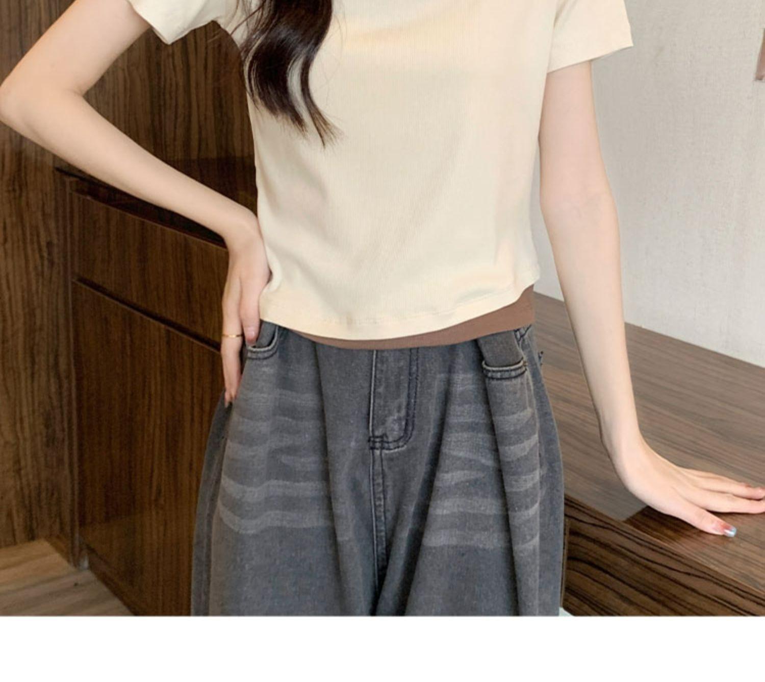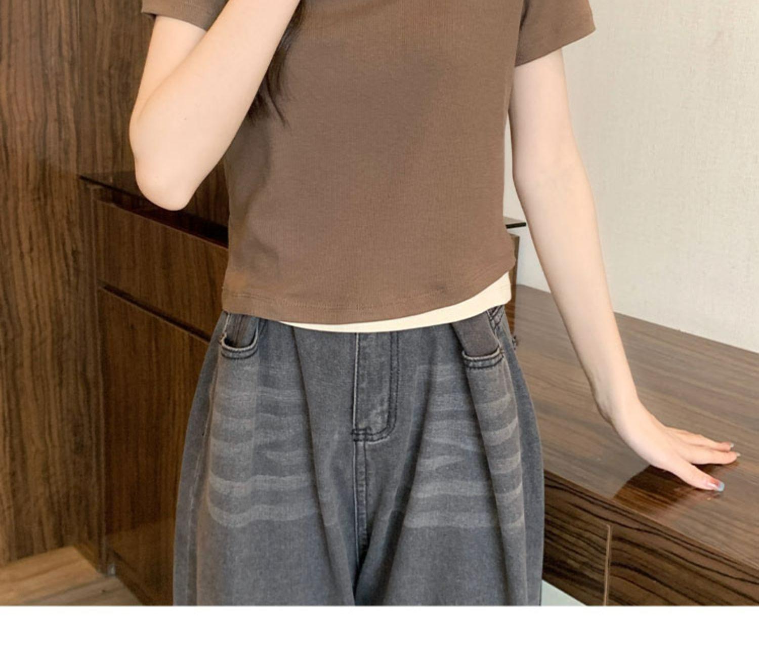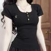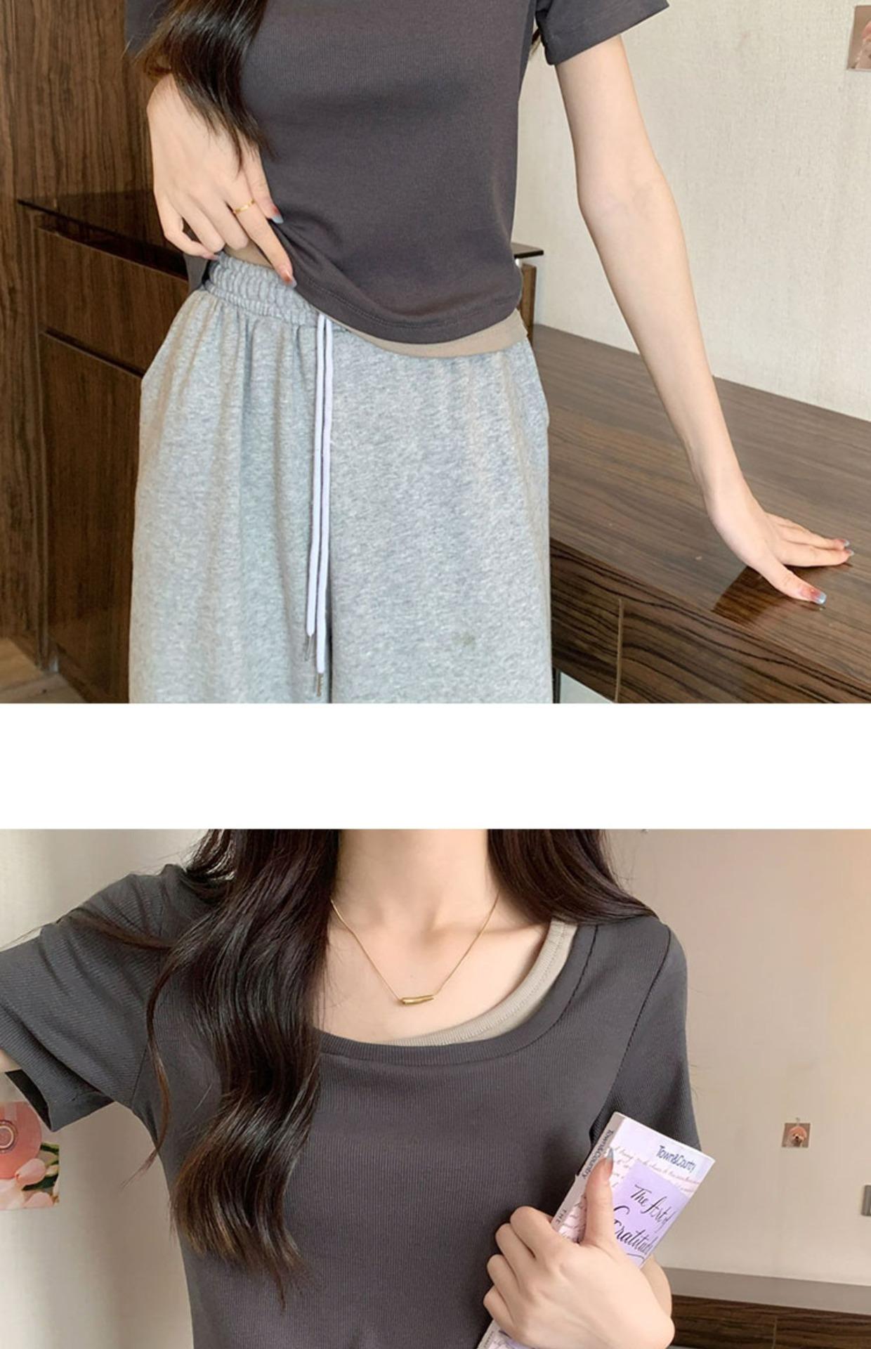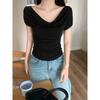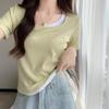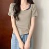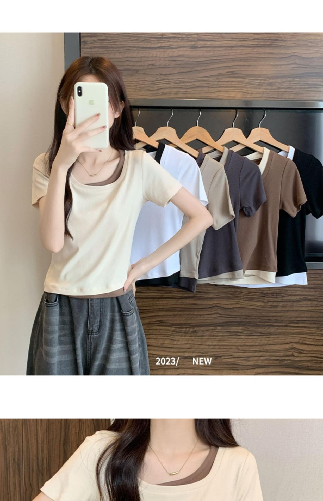 Diseño Delgado Clavícula Hombro Derecho Camiseta Falsa de Dos Piezas para Mujer Manga Corta Verano 2025 Estilo Súper Hot Chic Sexy Top