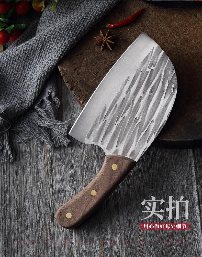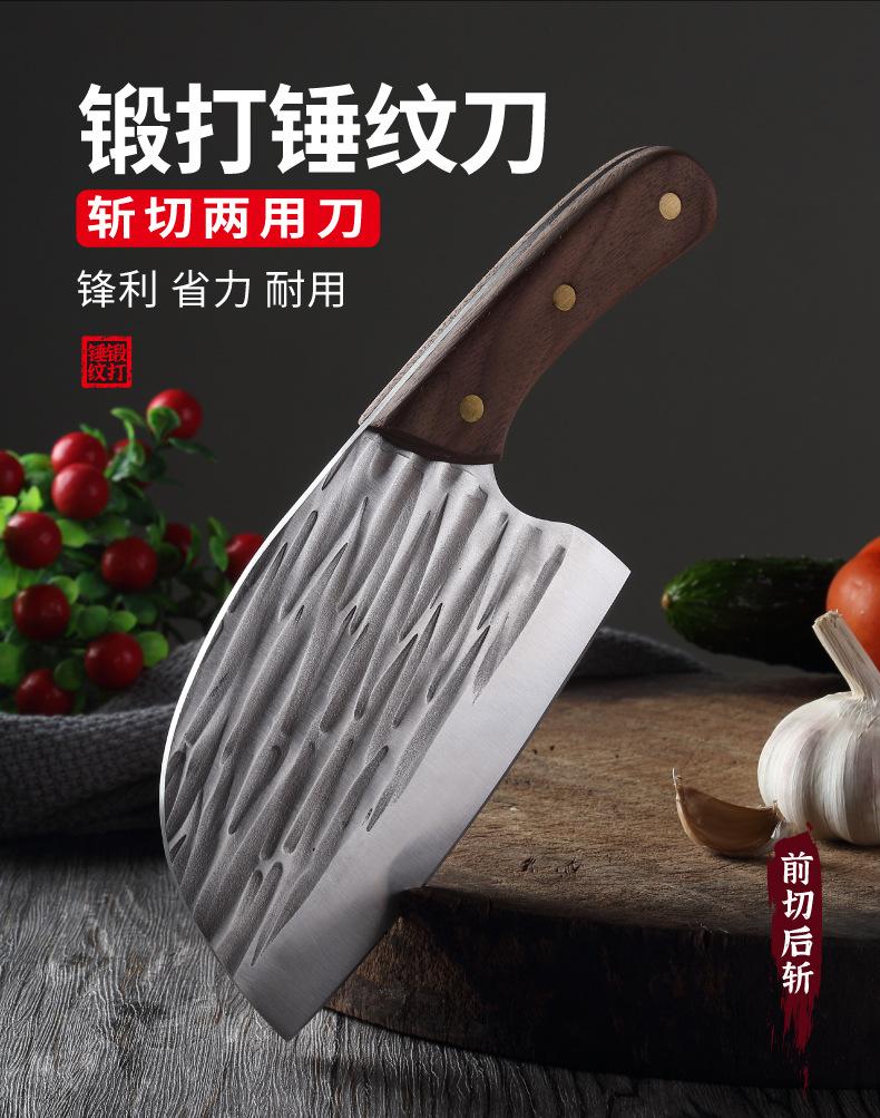 Patrón de martillo forjado antes y después del corte, cuchillo de doble propósito para el hogar, cocina, puesto de carne, cuchillo de pescado, cuchillo de rebanar afilado y engrosado, cuchillo para huesos