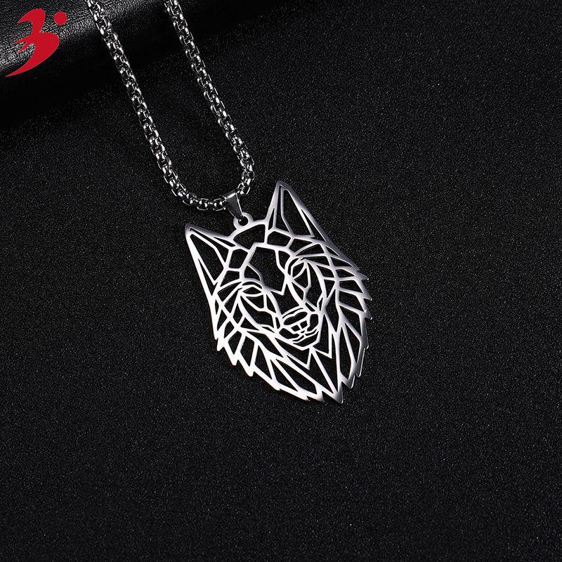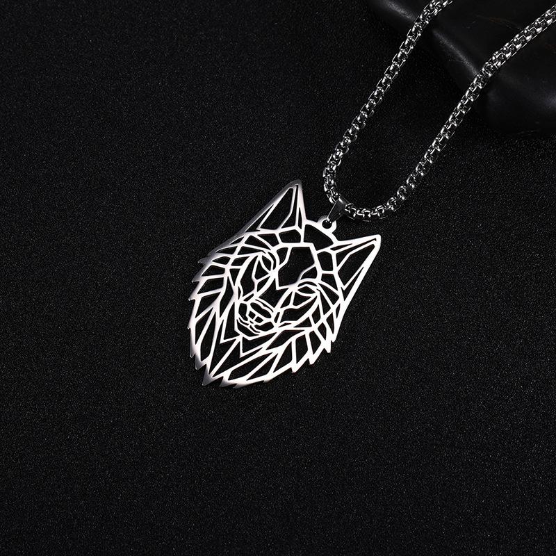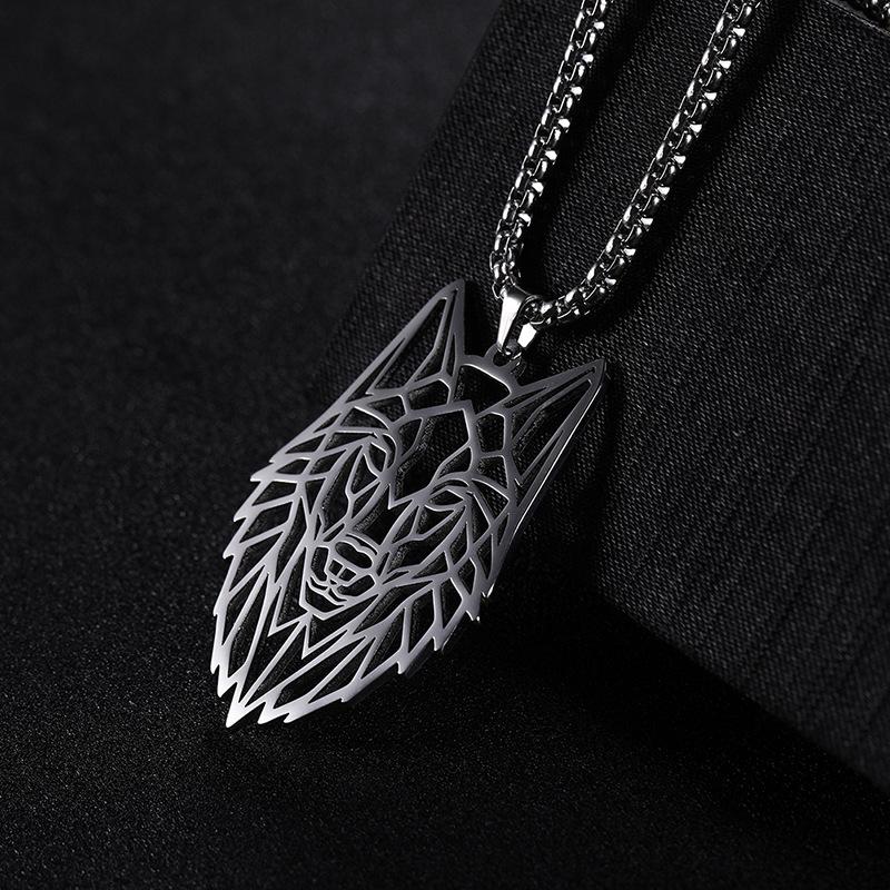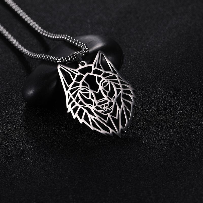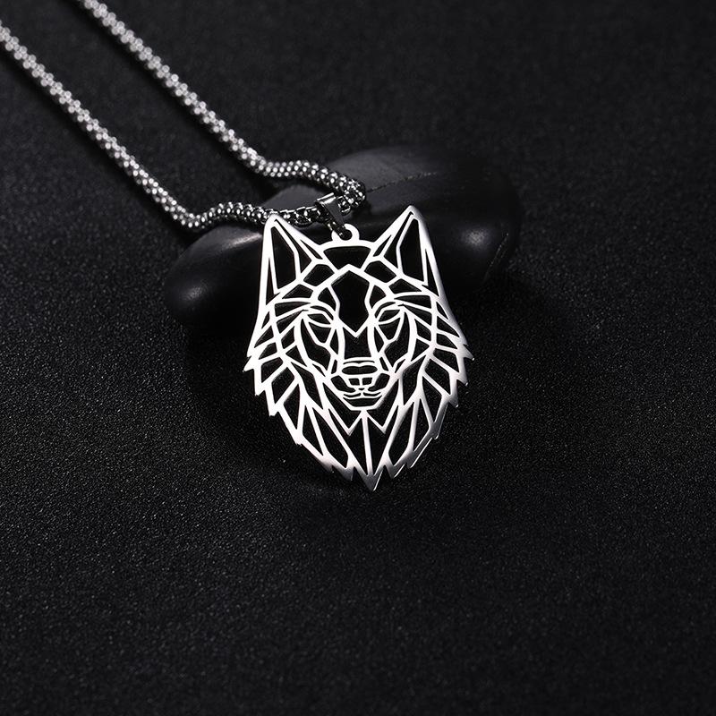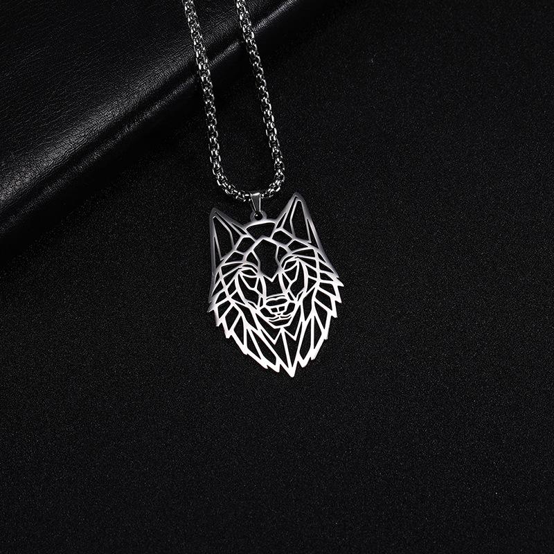 Nuevos accesorios transfronterizos con personalidad feroz, colgante hueco de animal lobo, collar de acero inoxidable, cadena de clavícula, cadena de suéter