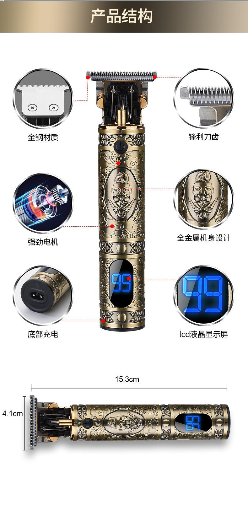 | Cortadora de pelo 3 en 1 con cabezal de aceite totalmente metálico, pantalla digital, eléctrica, para tallar y depilar la nariz, nueva, transfronteriza |
