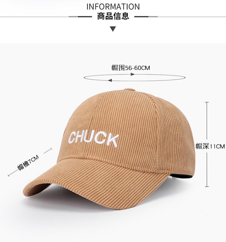 Otoño e Invierno nueva gorra de béisbol pana letra bordada gorra con visera moderna simple calle viaje sombrero para el sol hombres y mujeres