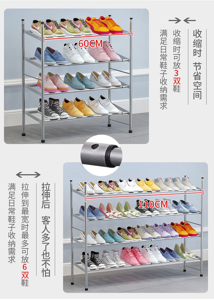 Solno zapatero simple retráctil doméstico de 4 niveles económico ahorrador de espacio dormitorio zapatero puerta almacenamiento a prueba de polvo