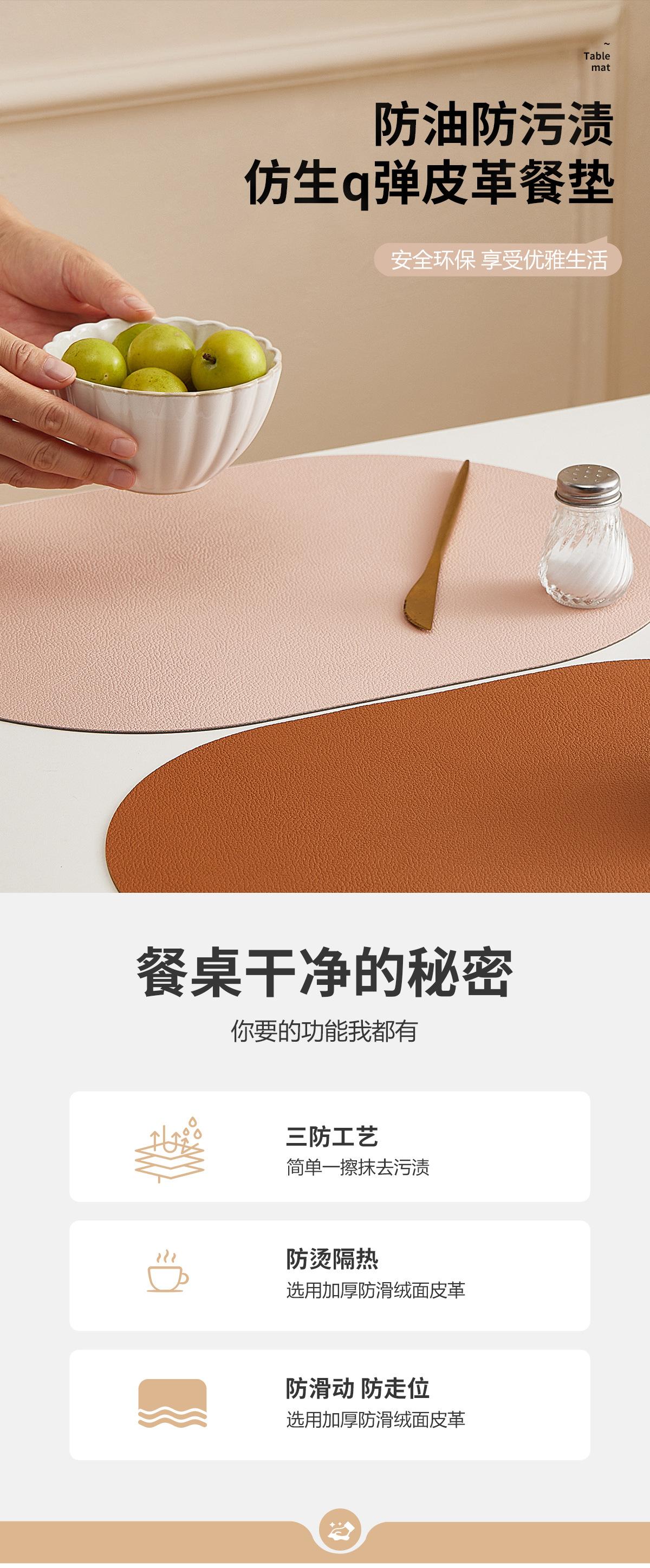 Nuevo mantel individual occidental de estilo escandinavo para el hogar, posavasos de té, almohadilla aislante, tapete para cuenco, mantel individual ovalado de cuero de PVC