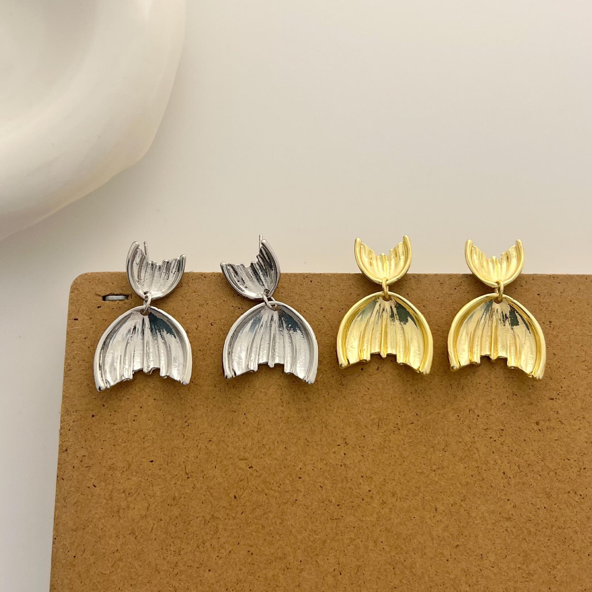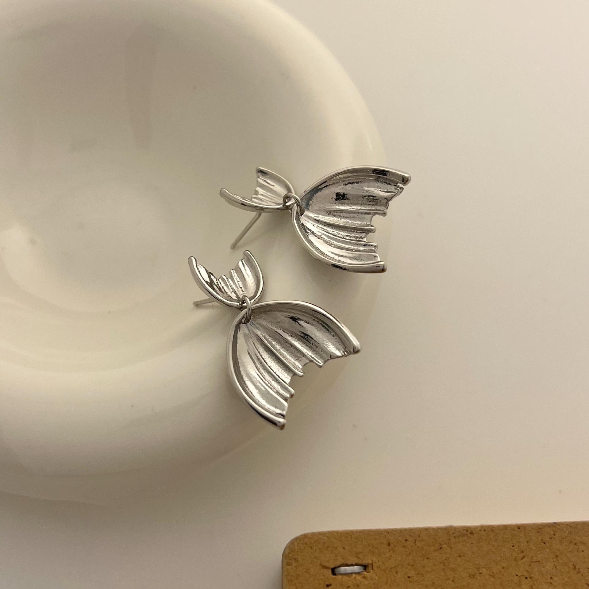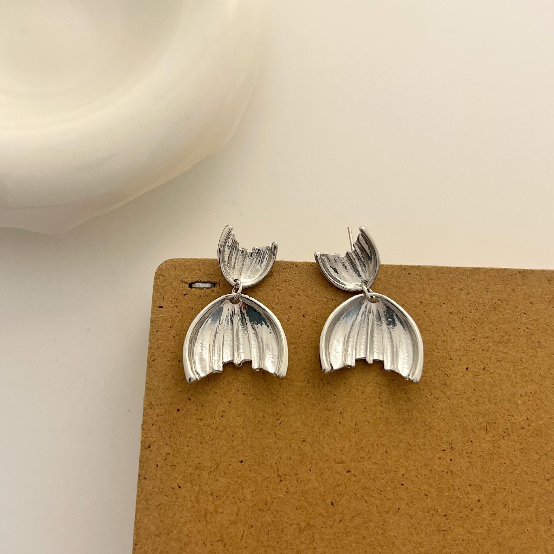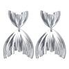 Pendientes de cola de pez plisados de metal de estilo frío, pendientes con diseño de personalidad sin sentido, pendientes de temperamento de nicho simple
