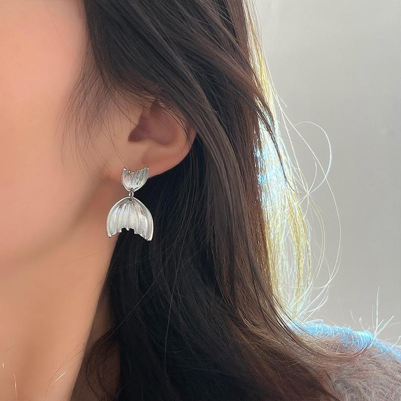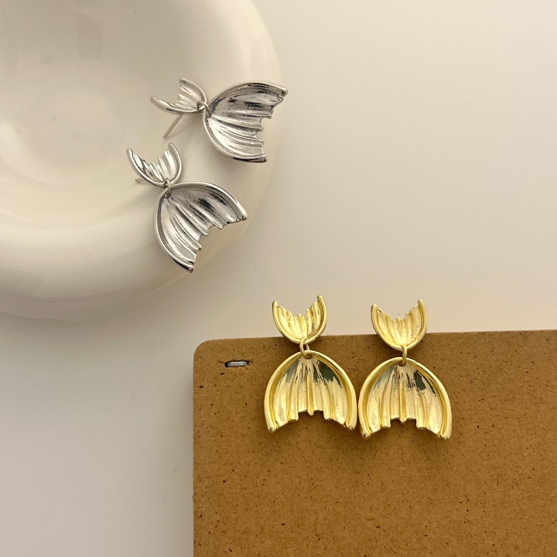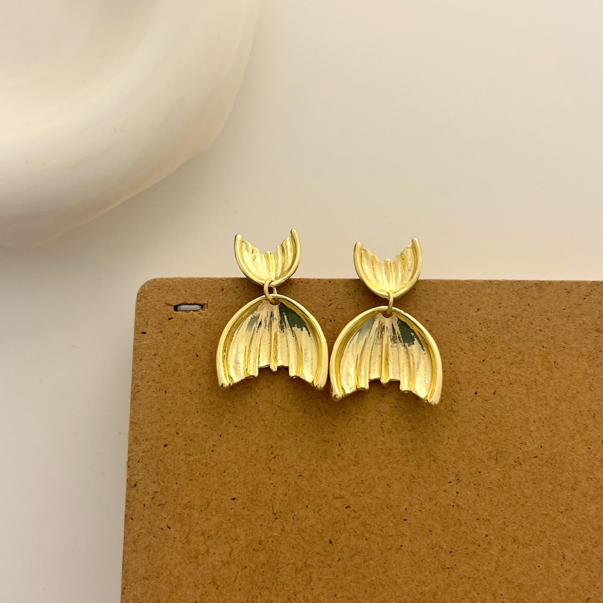 Pendientes de cola de pez plisados de metal de estilo frío, pendientes con diseño de personalidad sin sentido, pendientes de temperamento de nicho simple