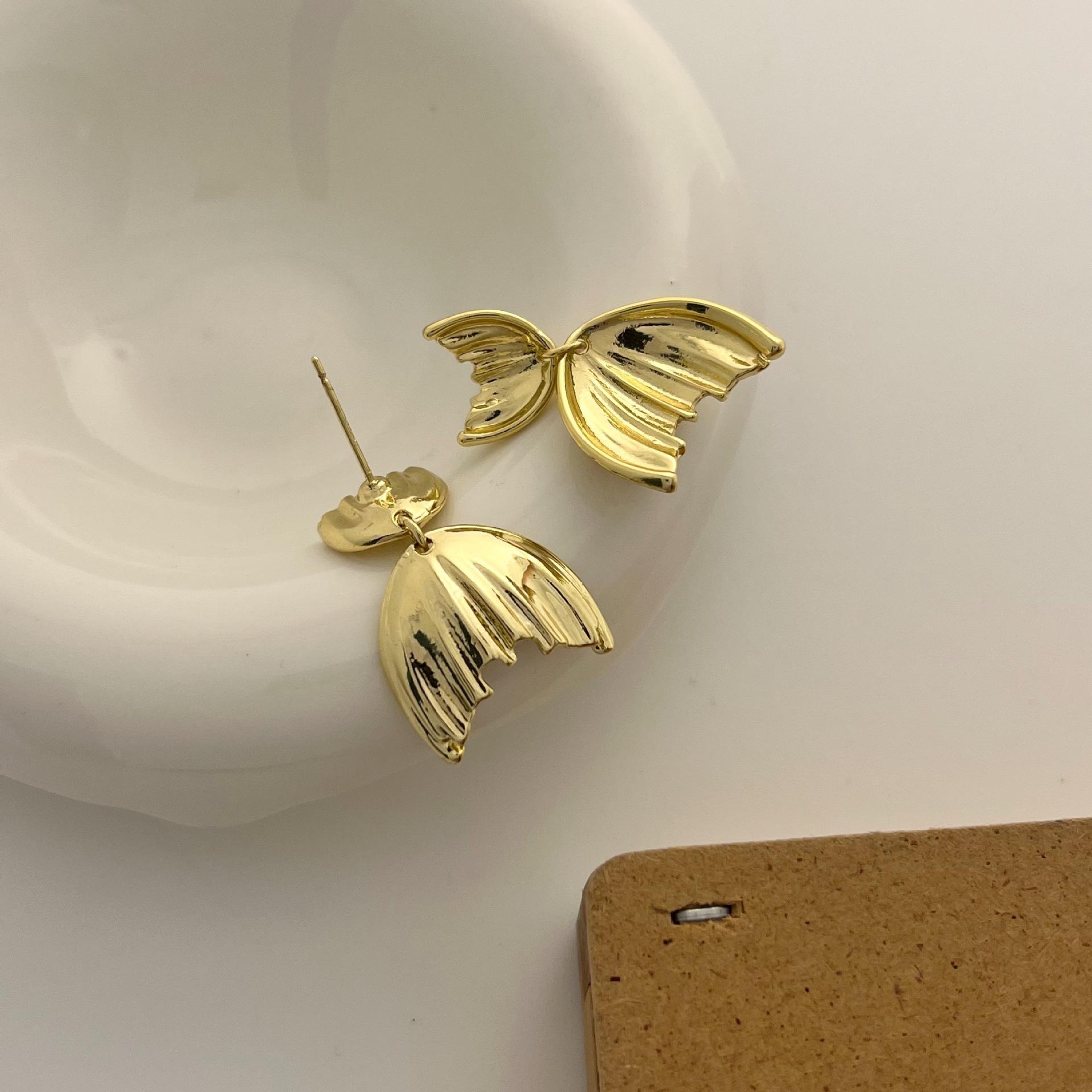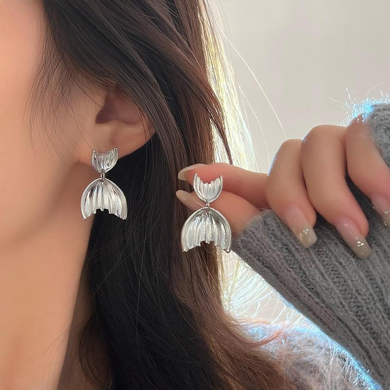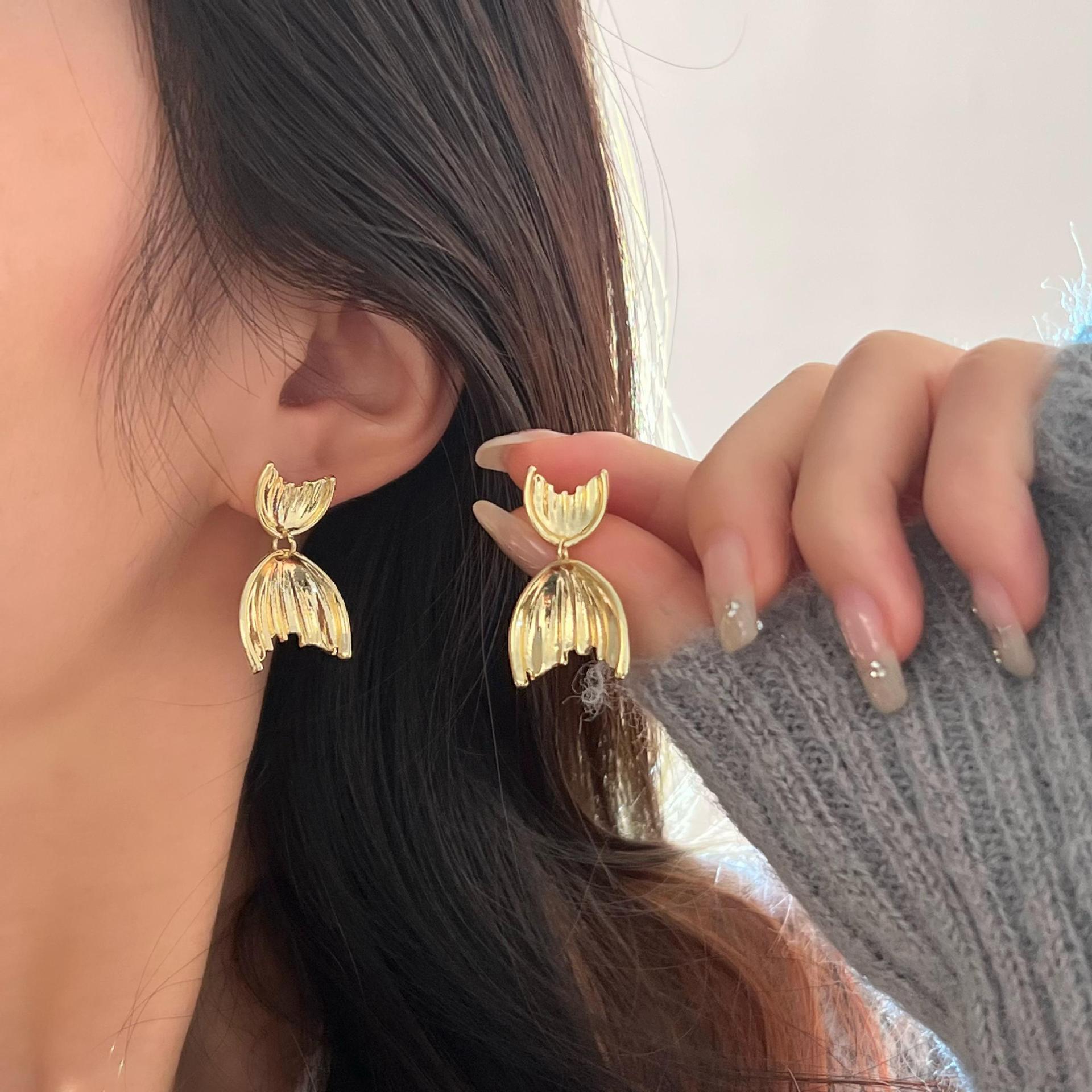 Compra Pendientes de cola de pez plisados de metal de estilo frío, pendientes con diseño de personalidad sin sentido, pendientes de temperamento de nicho simple al por mayor en Joom.pro