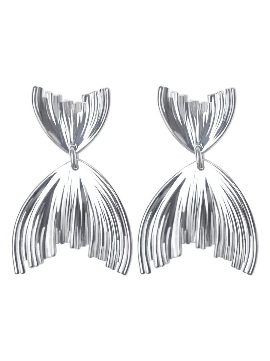 Golden Pleated Fishtail Stud Earrings, Silver Pleated Fishtail Stud Earrings