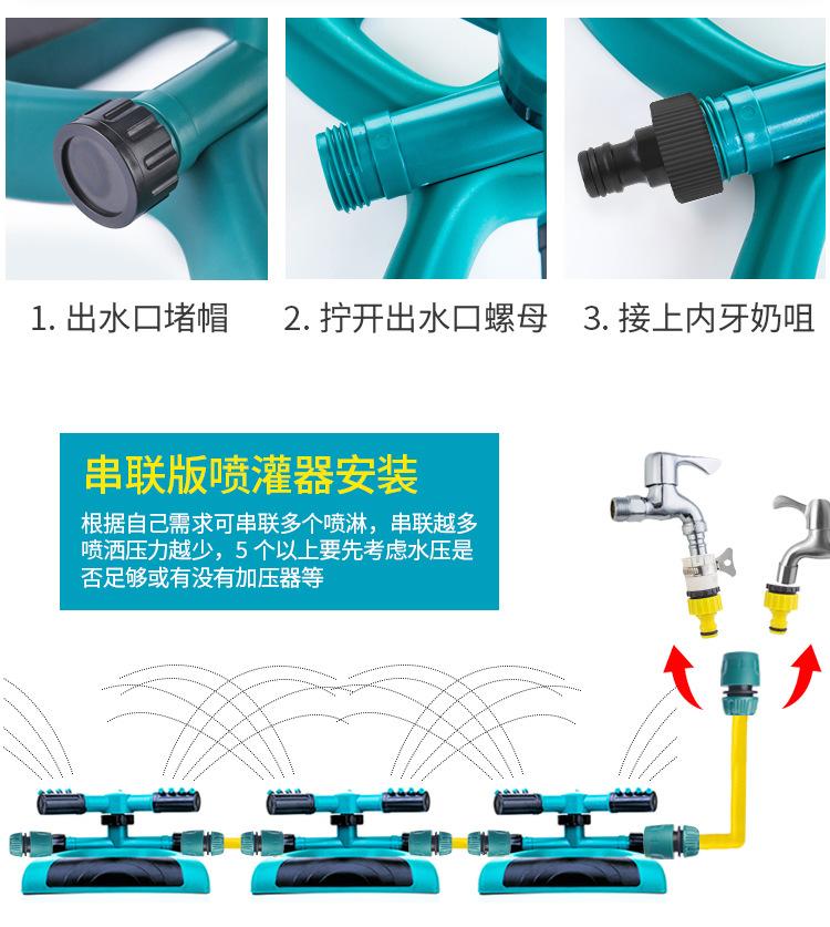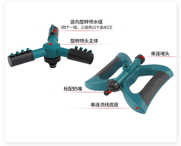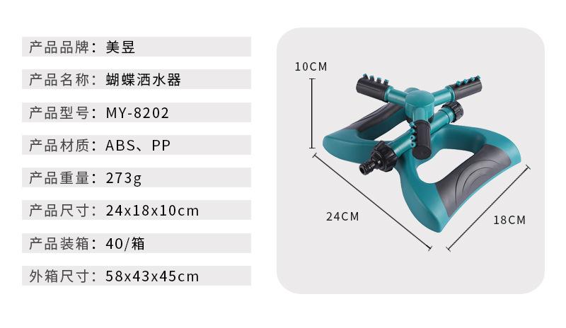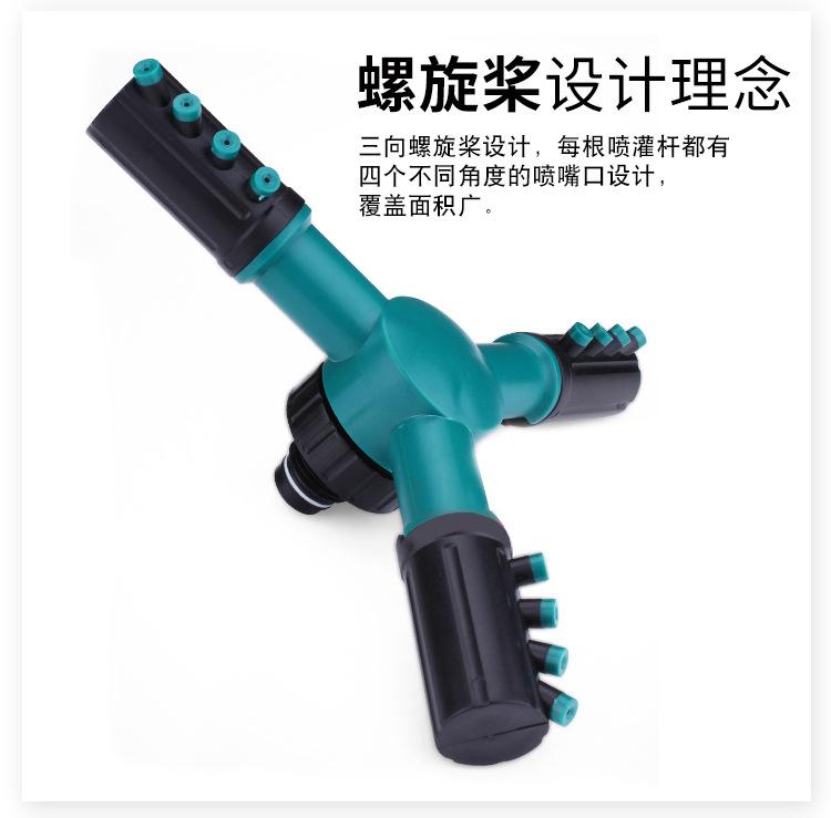 Aspersor automático giratorio de tres puntas con base de mariposa para riego de jardín