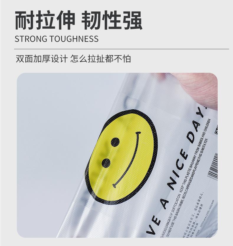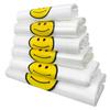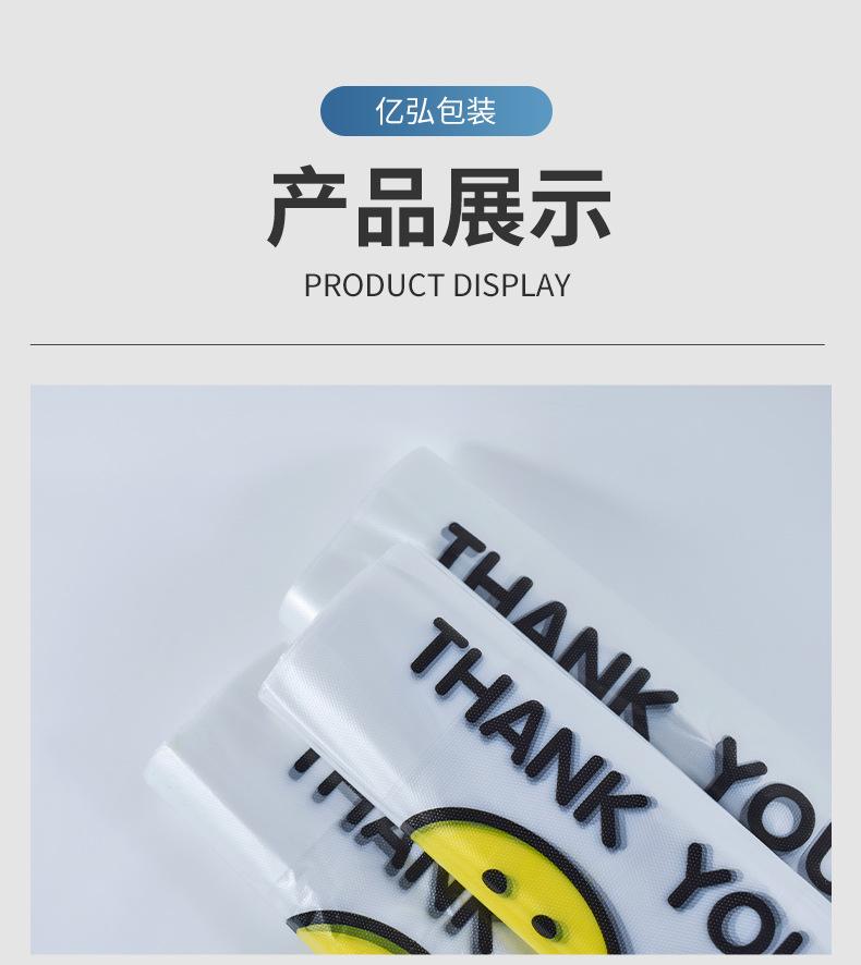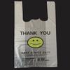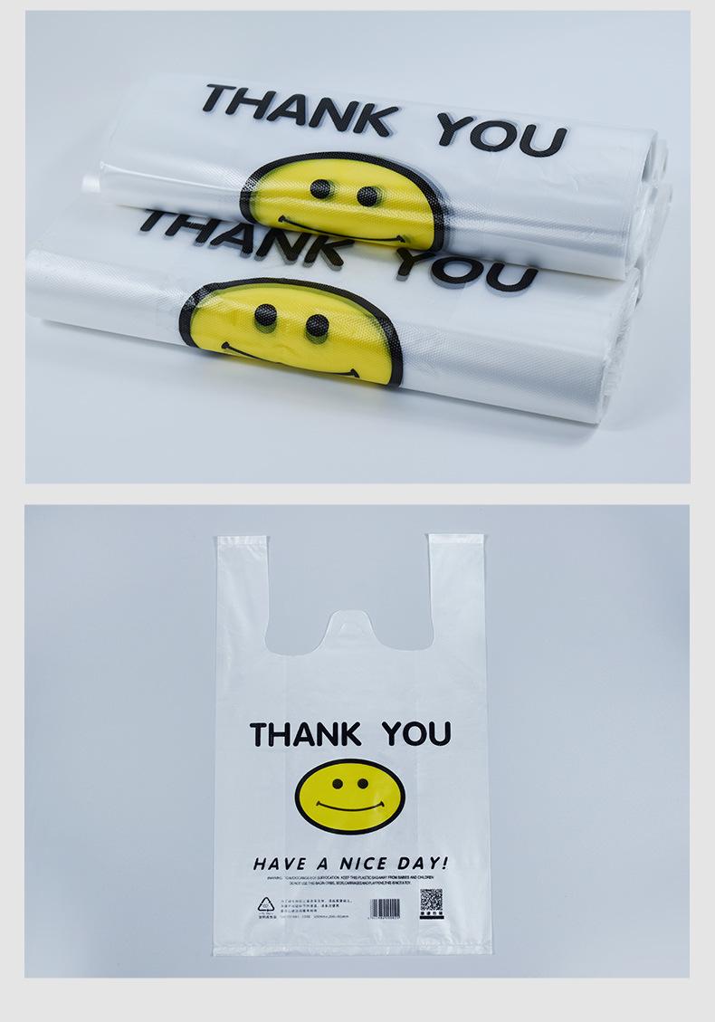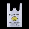 Bolsa transparente con cara sonriente para llevar, para compras de supermercado, bolsa tipo chaleco de fruta, bolsa de plástico con cara sonriente roja y logotipo impreso.