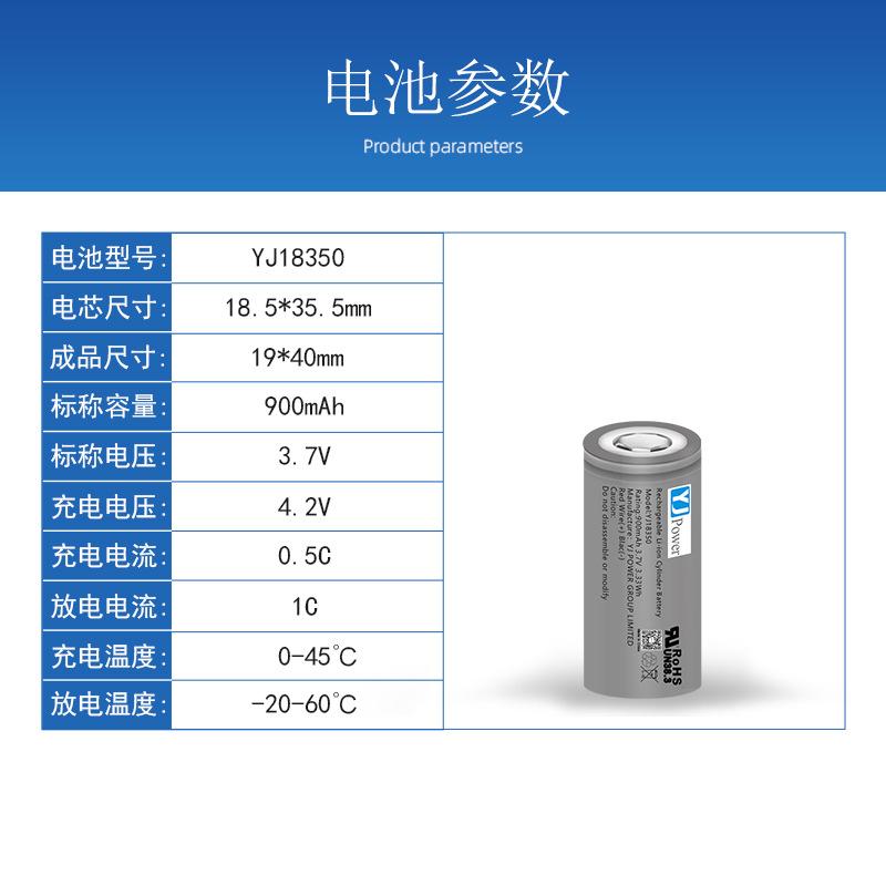 Batería de litio Yanjiu 18350 personalizada, 3,7 V, 900 mAh, para equipos de iluminación de emergencia, con certificación MSDS.