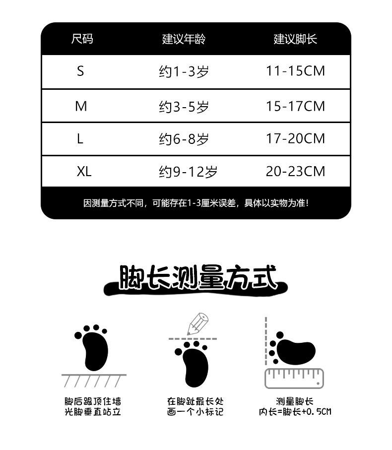 M [3-5 years old 15-17cm]], L [6-8 years old 17-20cm]], XL [9-12 years old 20-23cm]], XXL [12-year-old adult code]]
