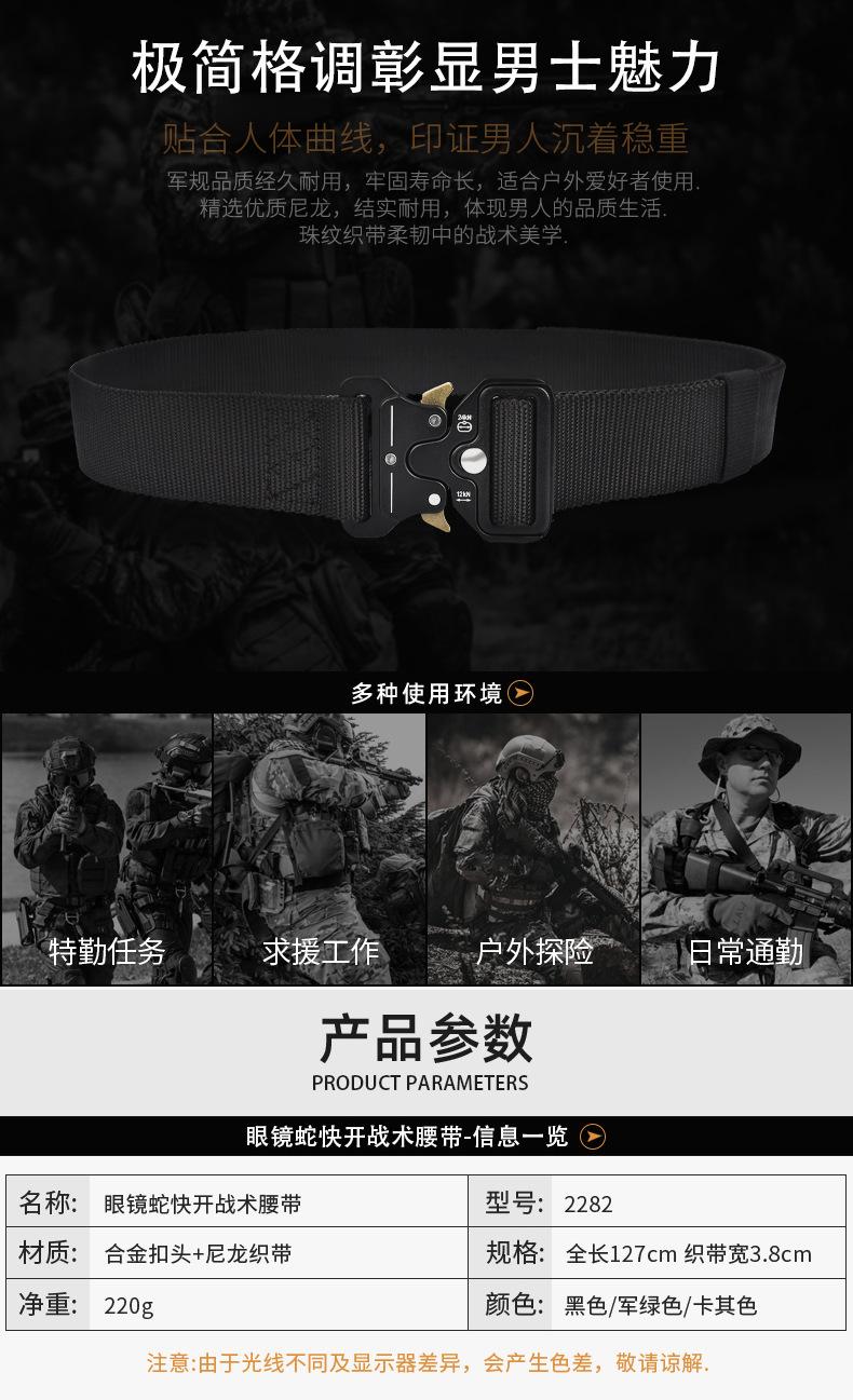 Cinturón táctico Cobra para exteriores para hombre, multifuncional, estilo militar, de lona, con clip, hebilla de nailon de fácil cierre.