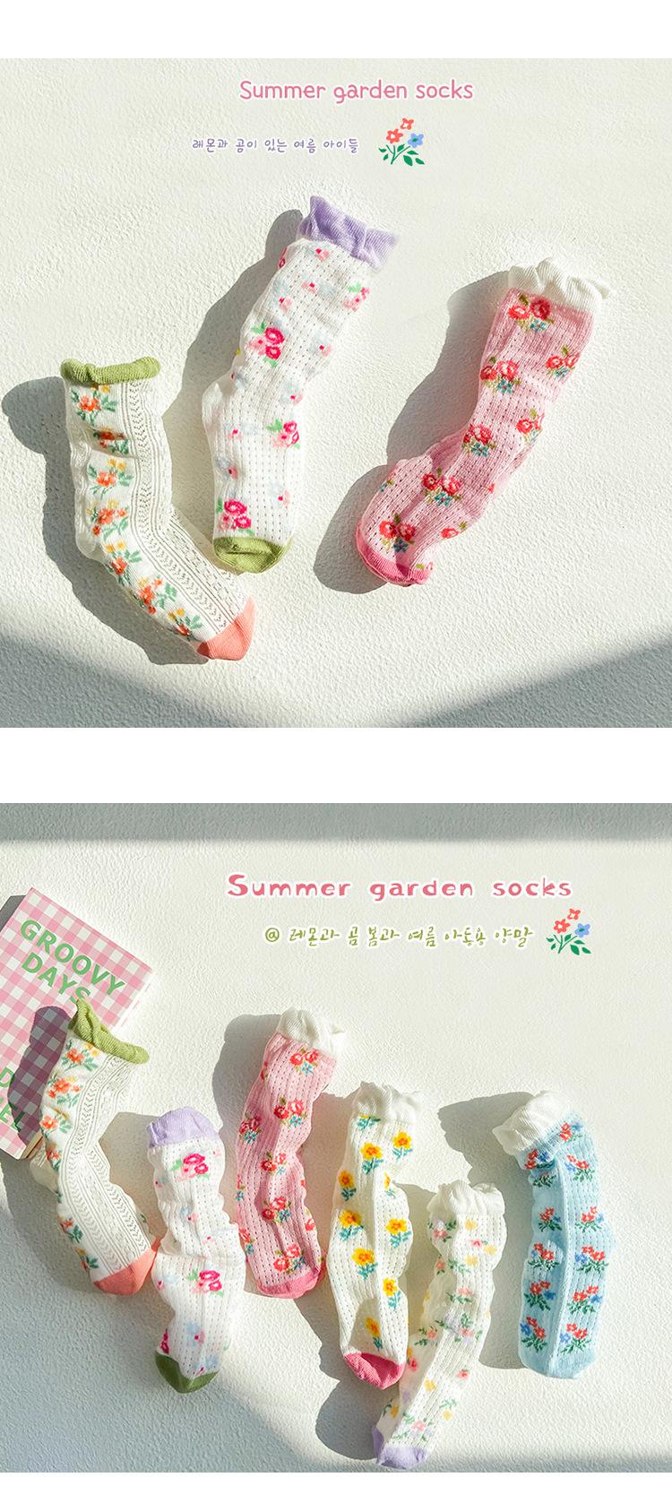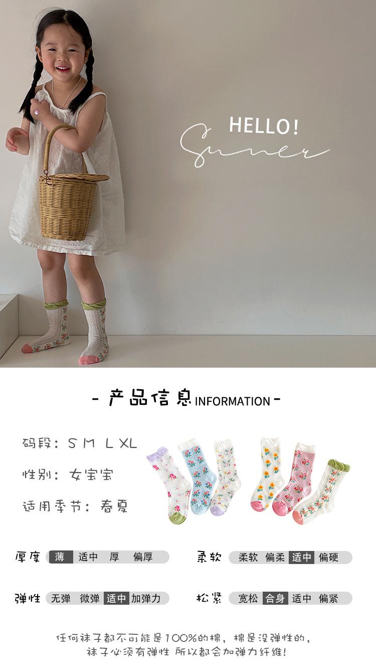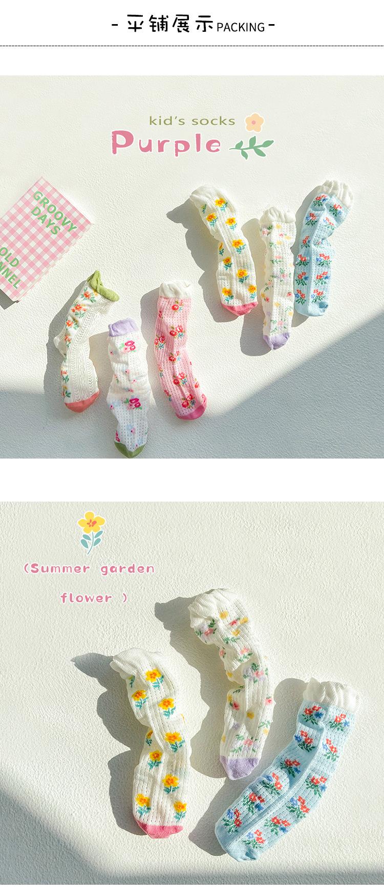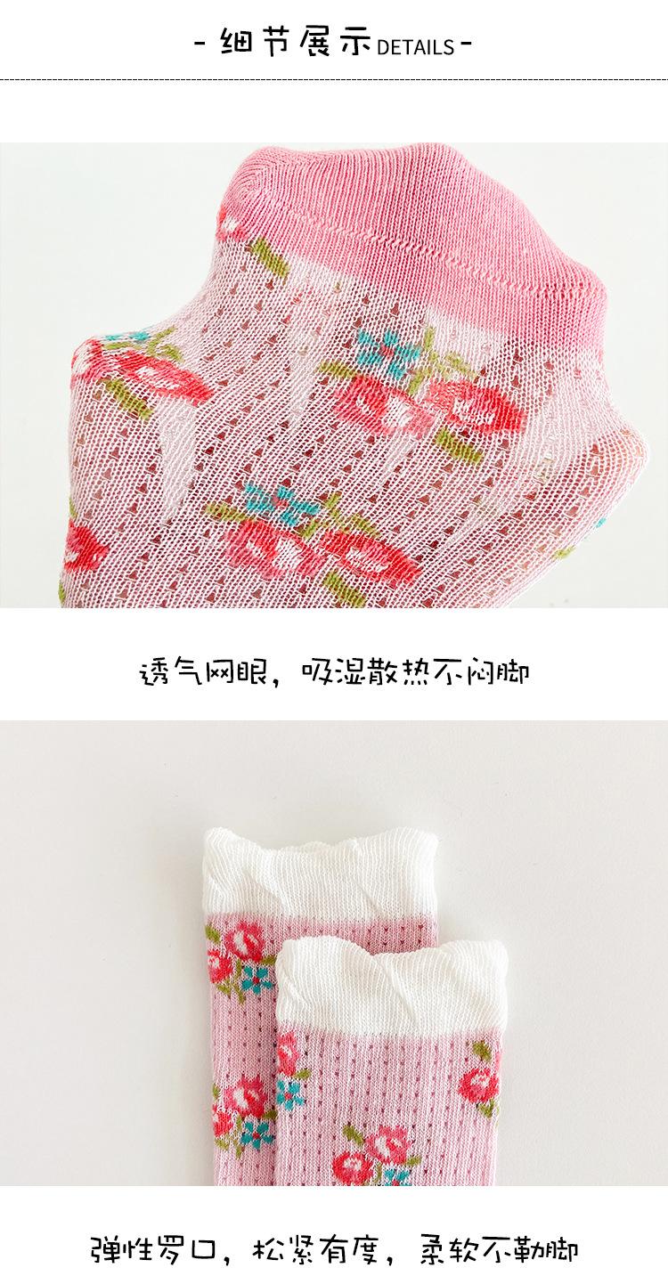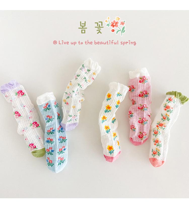 1468 Calcetines para Niños al Mayoreo 2024 Primavera y Verano Delgados Calcetines de Malla de Flores Pequeñas Algodón Boca de Burbuja Niñas Flores Calcetines de Media Caña