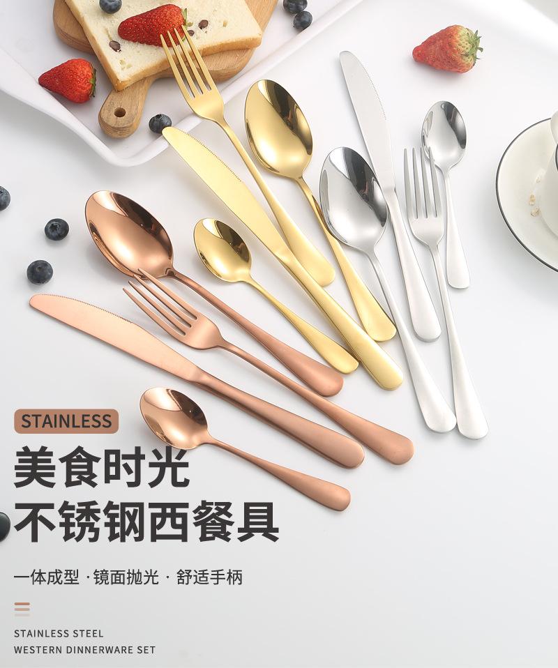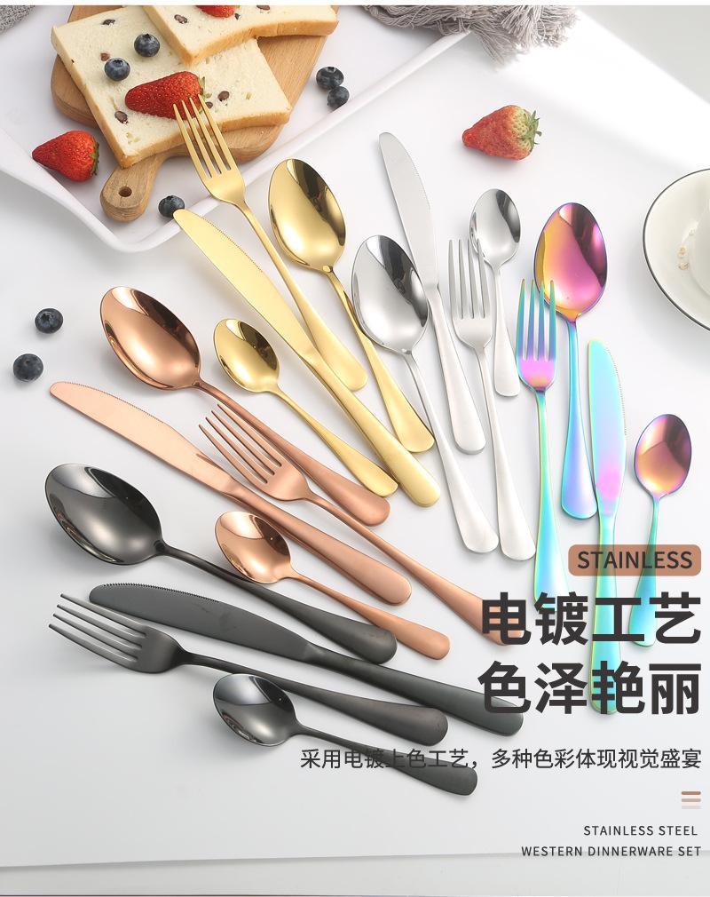 Vajilla de acero inoxidable 1010, cuchara de café para postre de hotel, vajilla de la serie occidental, cuchillo para carne, tenedor, cuchara, juego de cuatro platos principales