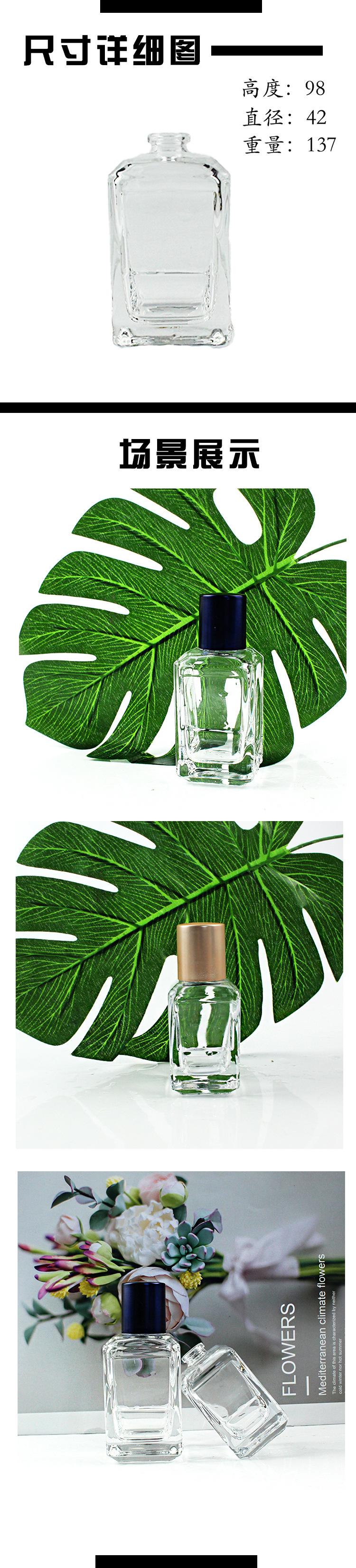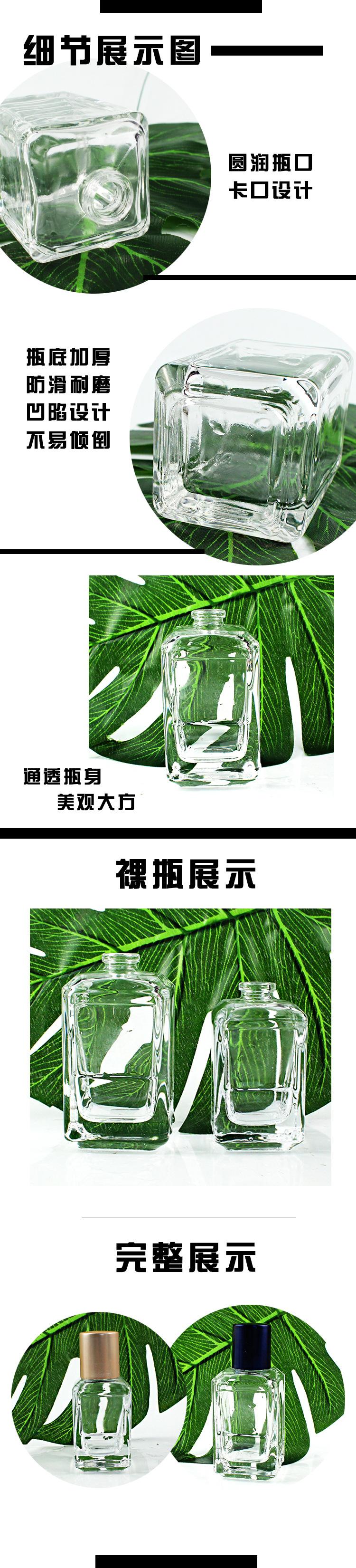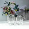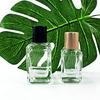 Botella de perfume de vidrio vacía, cuadrada, transparente, de 30 ml y 50 ml, con tapa, para subembotellado.