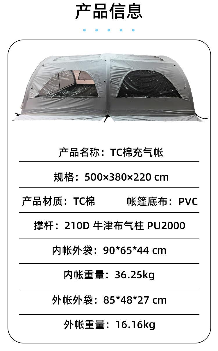 Ventas Directas de Fábrica Tienda Túnel Inflable de Algodón TC para Viajes al Aire Libre, Gran Espacio para Camping, Tienda Multifuncional Personalizable