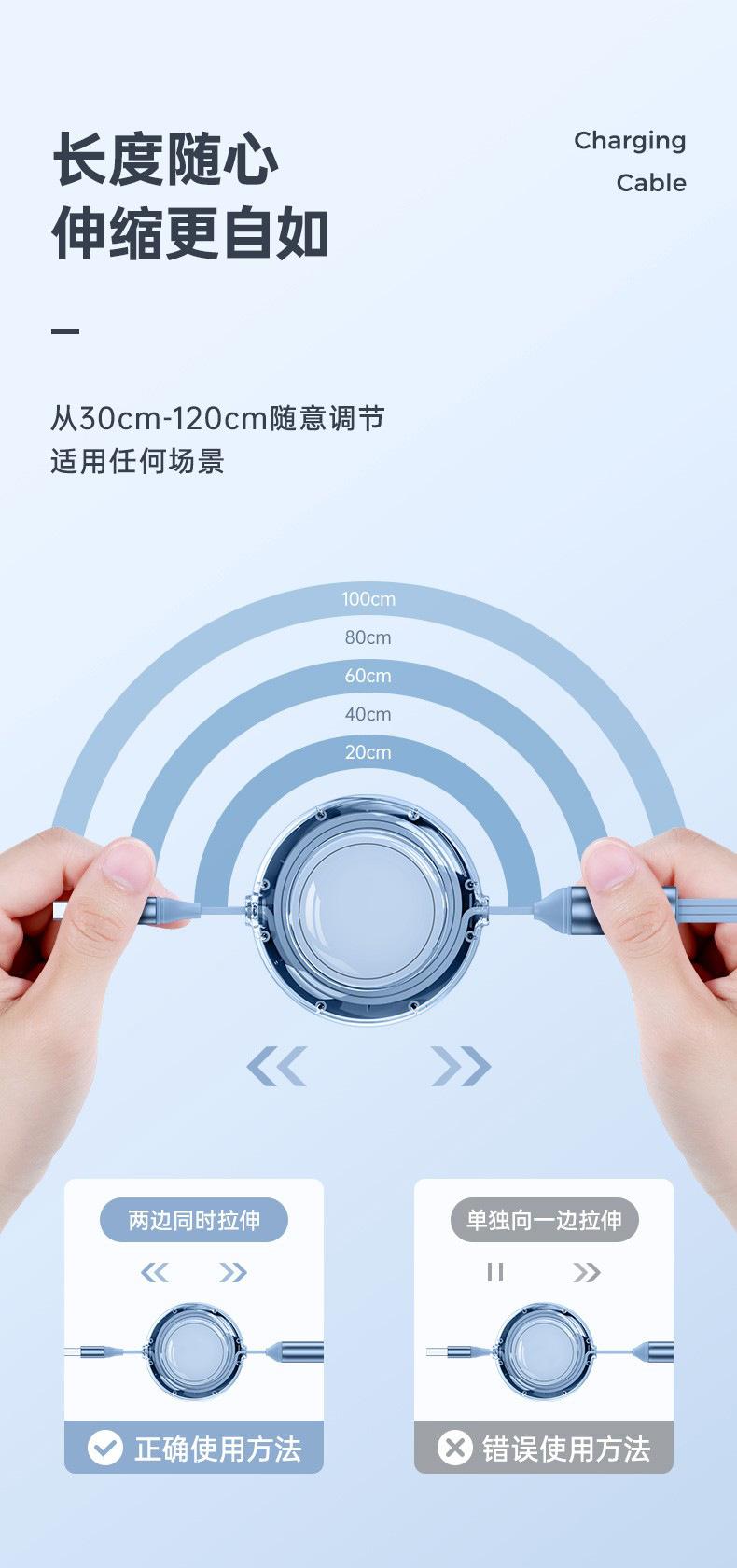 [Aspectos destacados del producto]: Diseño telescópico de uno a tres, resistente al estiramiento, antienredos, desviación inteligente, tres cabezales que se cargan al mismo tiempo, colores brillantes, atmósfera de alta gama y elegante.