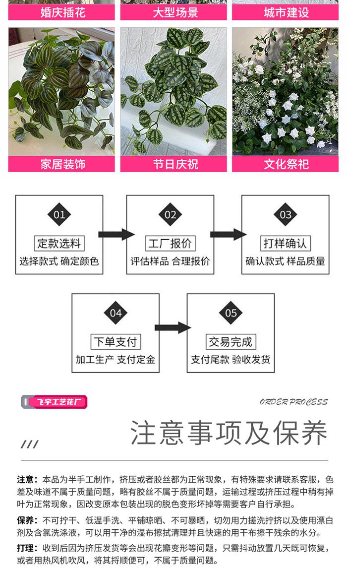 Estimado cliente, nuestra tienda produce y vende al por mayor todo tipo de flores y plantas artificiales. En principio, solo vendemos artículos grandes, pero también aceptamos muestras. Sin embargo, no se admiten devoluciones ni cambios de los productos de muestra. Por ejemplo, si compra solo uno o dos ejemplares de cada tipo, comprar uno o dos de varias variedades se considera una muestra. No se admiten reembolsos. Le rogamos que lo lea detenidamente antes de realizar un pedido. Disculpe las molestias. ¡Gracias por su cooperación!