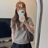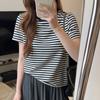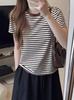 Camiseta vintage de rayas contrastantes para mujer, primavera y verano 2024, nueva, sencilla, combinable, holgada, adelgazante, informal, de manga corta