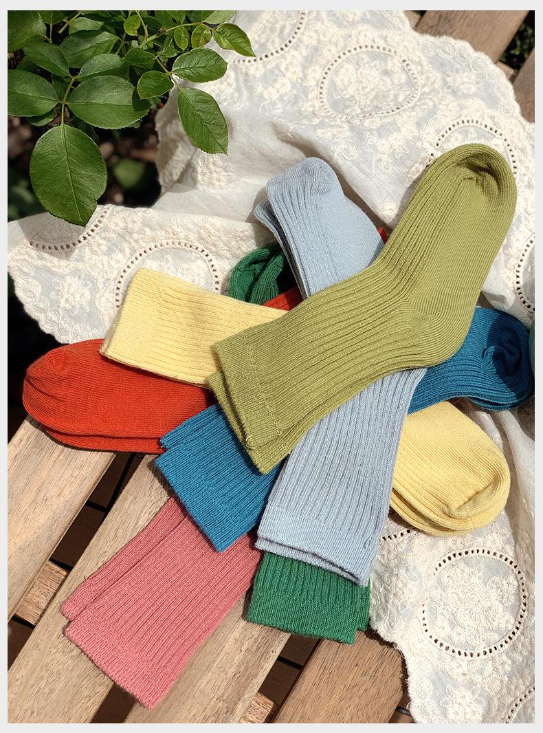 Calcetines para bebé Primavera y Otoño Nuevos calcetines hasta media pantorrilla para niñas estilo coreano lindos calcetines de pantorrilla color caramelo calcetines de algodón para niños de color sólido