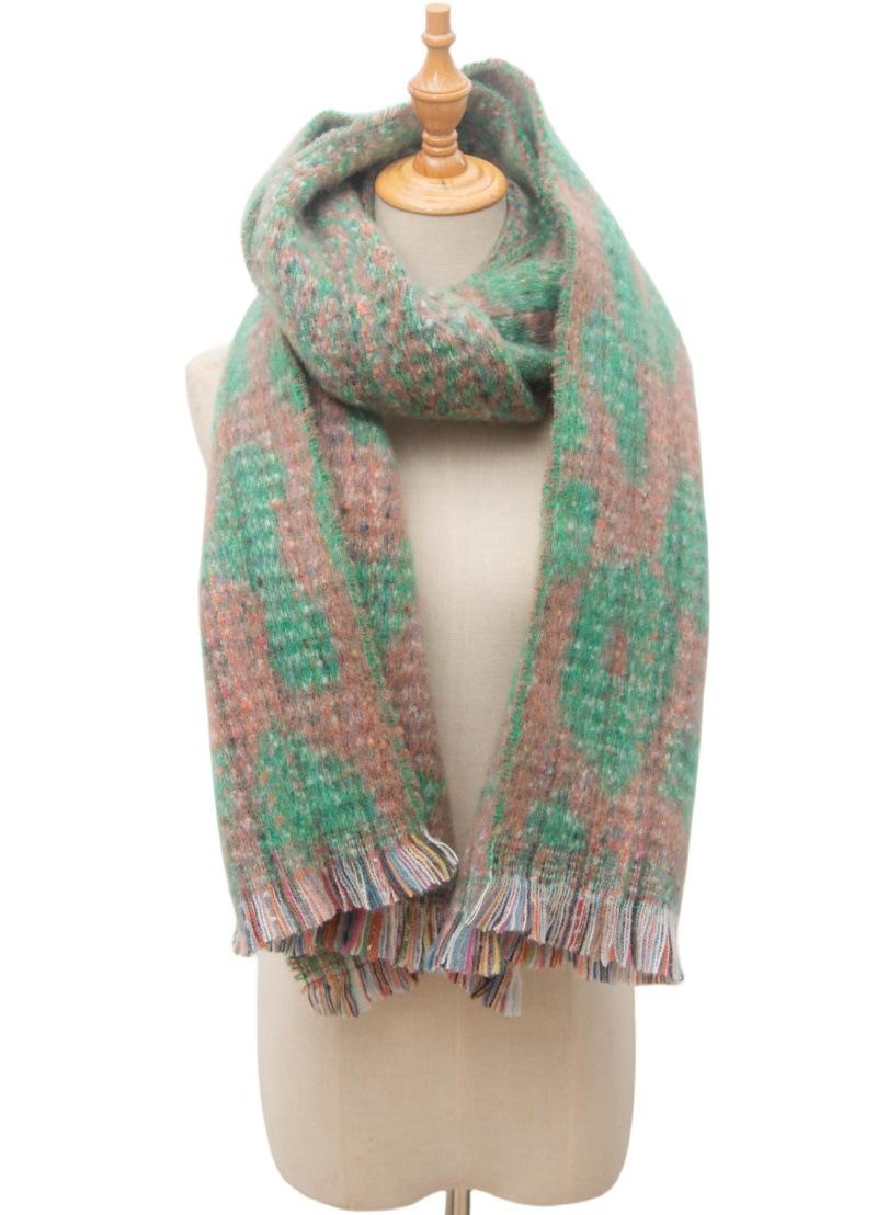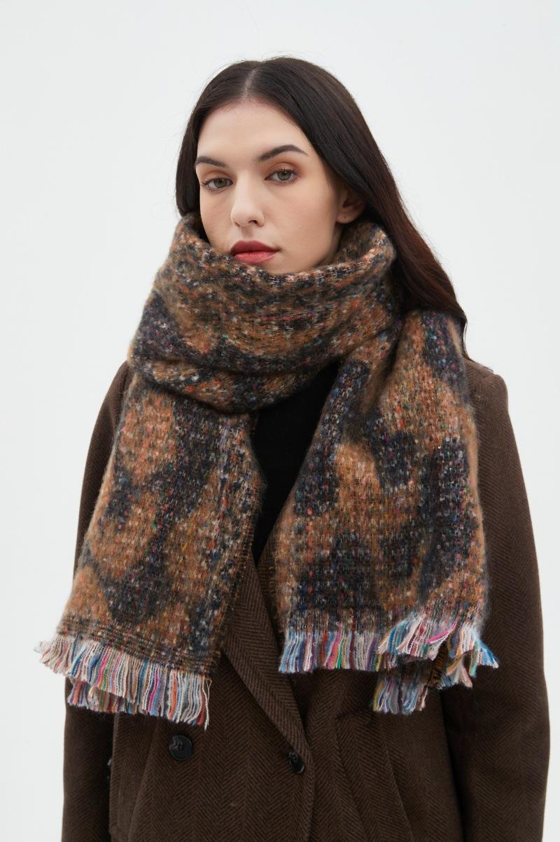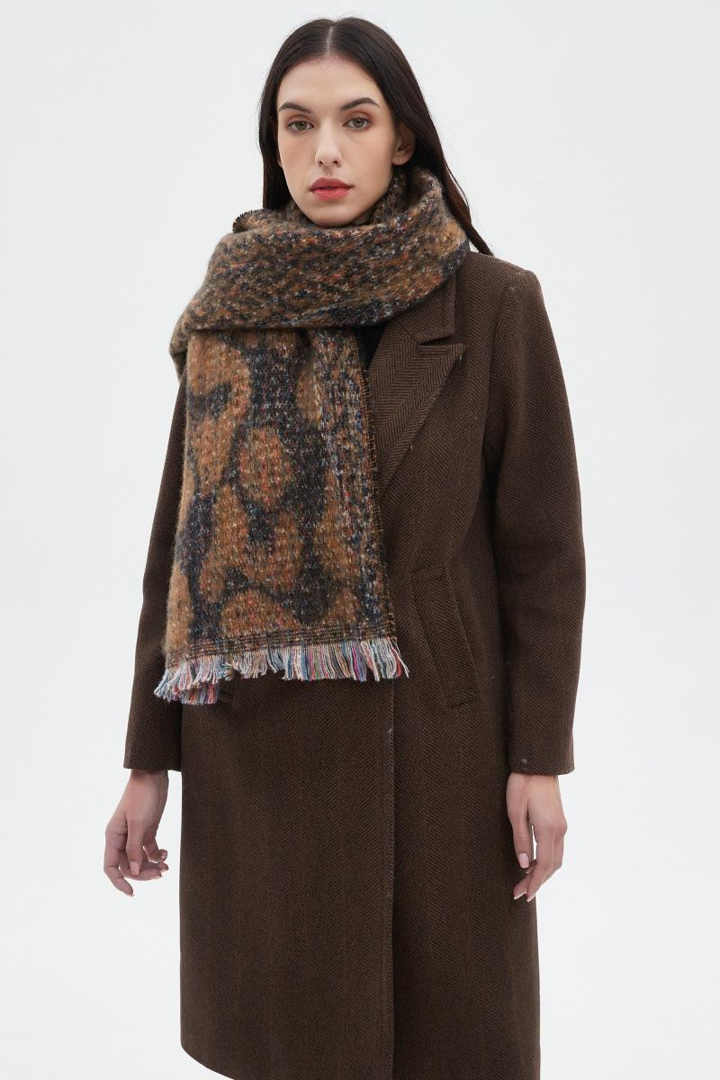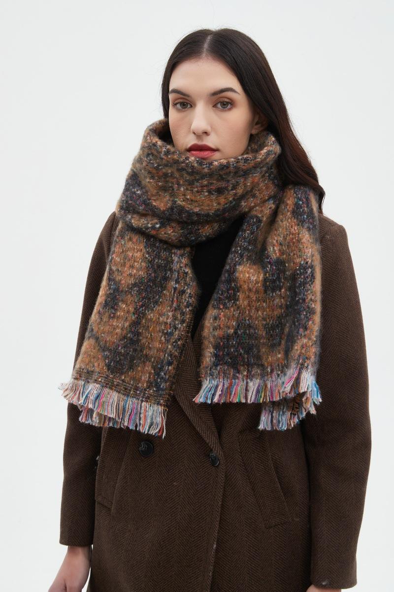 Bufanda Jacquard Gruesa Popular de Exportación de Amazon, Estilo Invierno Europeo y Americano, Bufanda Jacquard Unisex Corta con Flecos Grande Estampado Leopardo