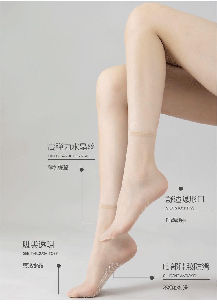 10 pares de medias antideslizantes de silicona para mujer, de seda, anti-gancho, para primavera y verano, finas, negras, al por mayor