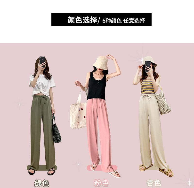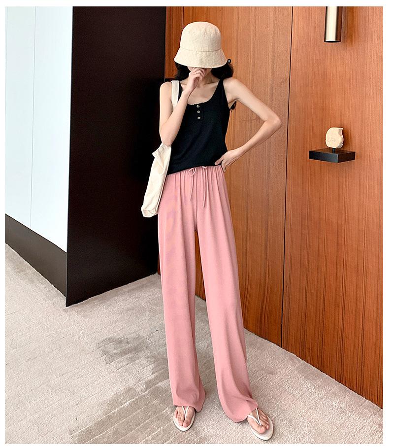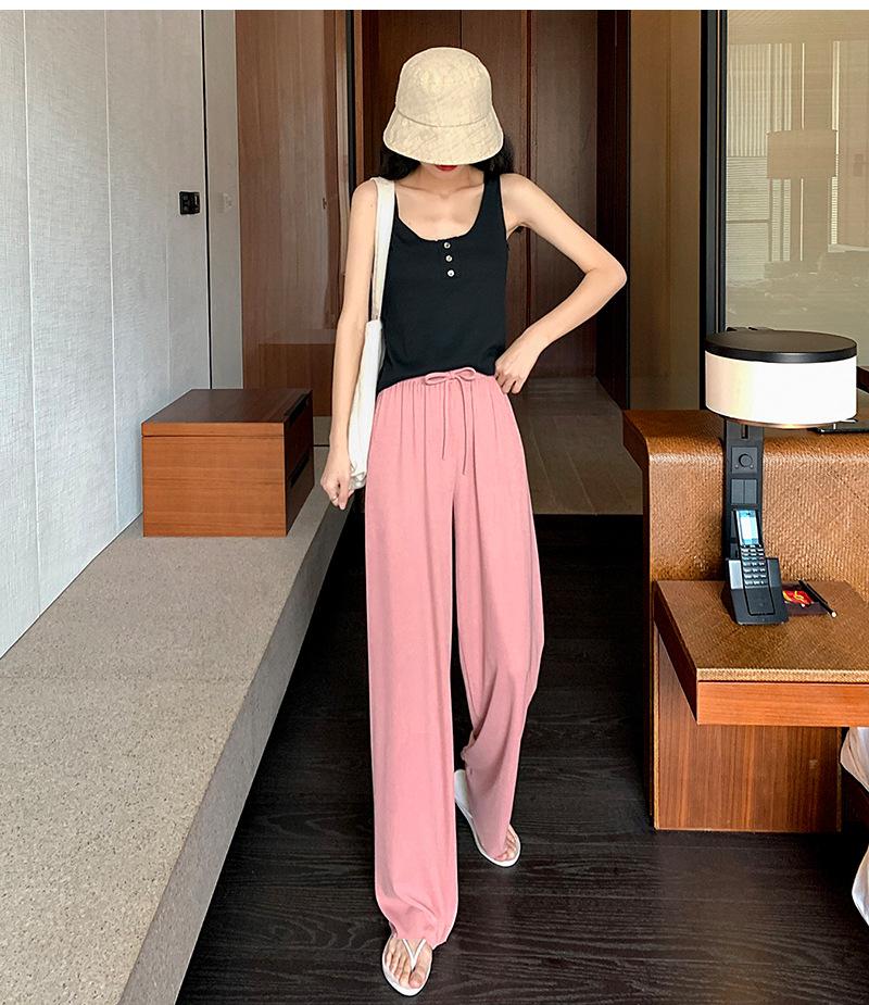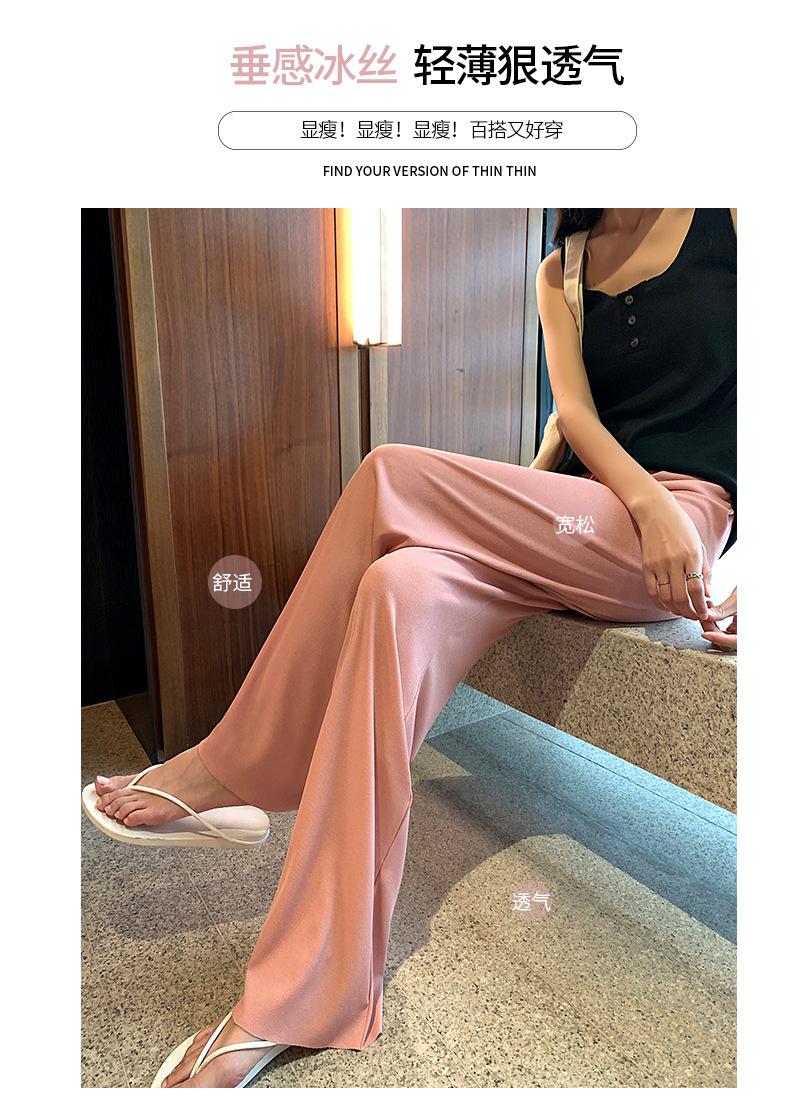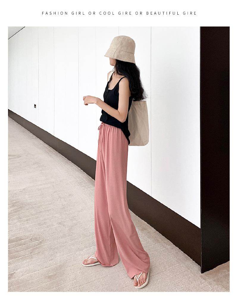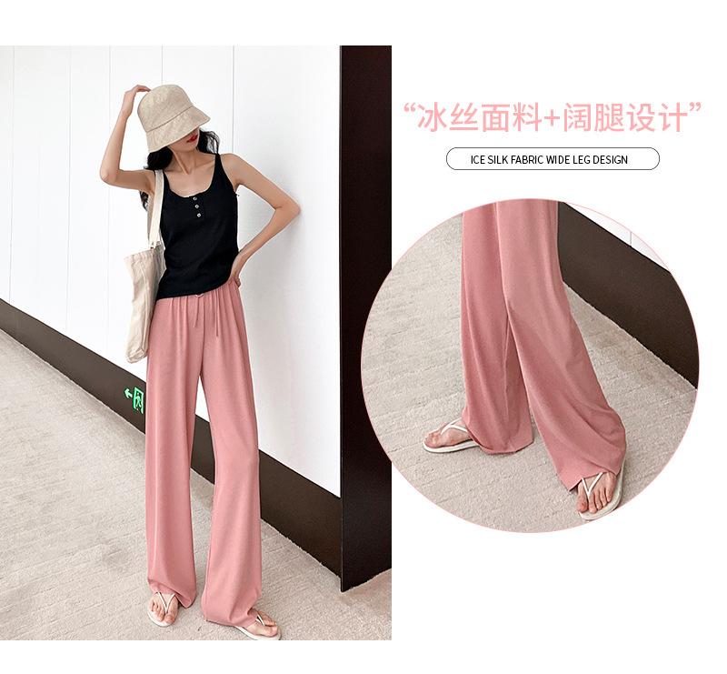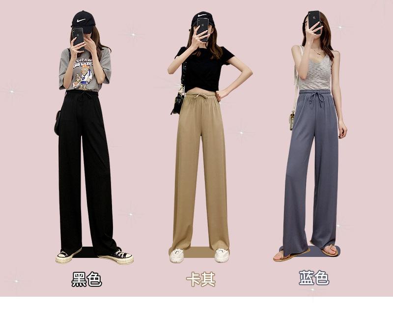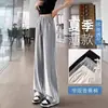 Pantalones anchos de pierna estrecha para mujer en verano, delgados, de cintura alta, holgados, de seda helada, rectos, casuales, ajustados, hasta el suelo para mujer