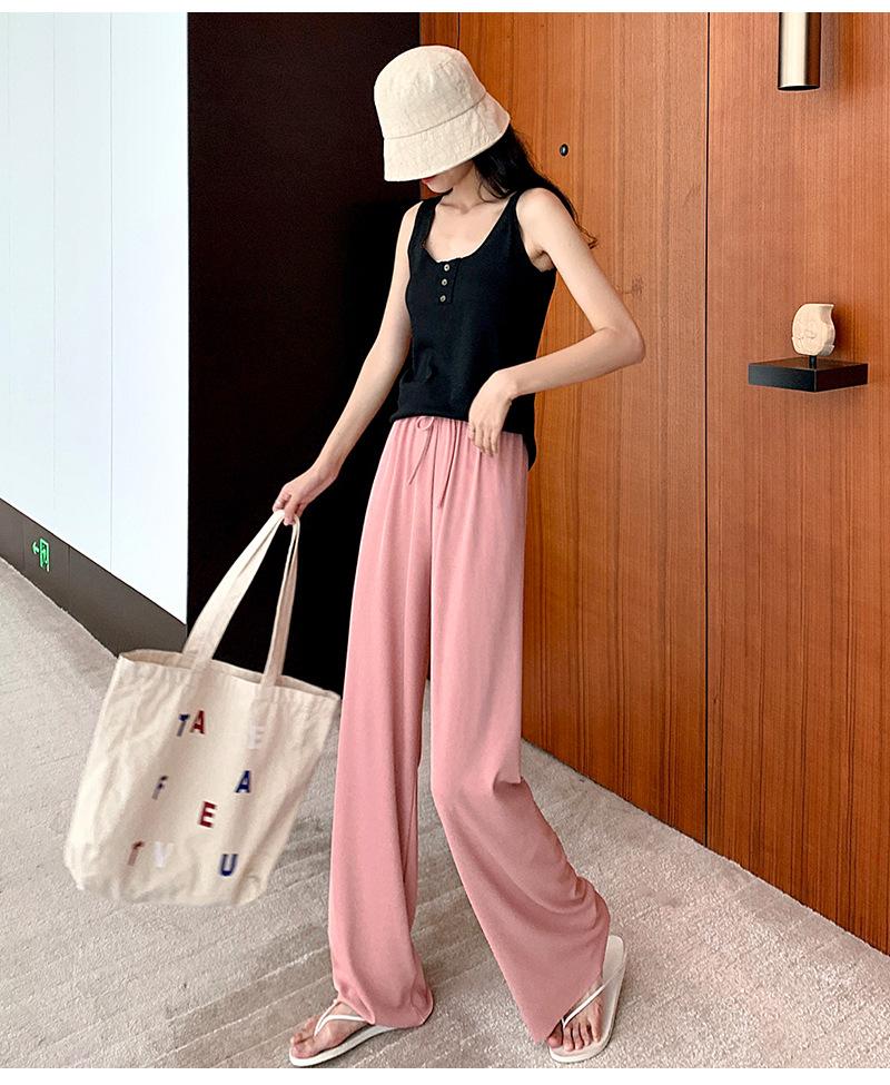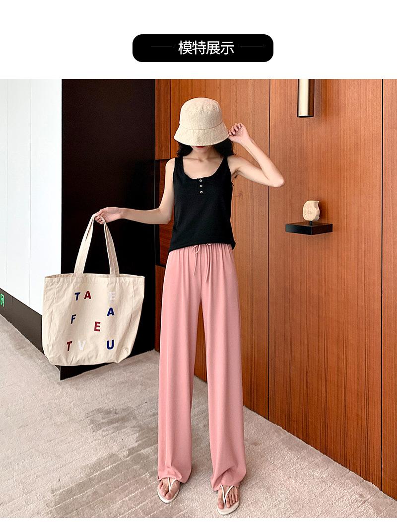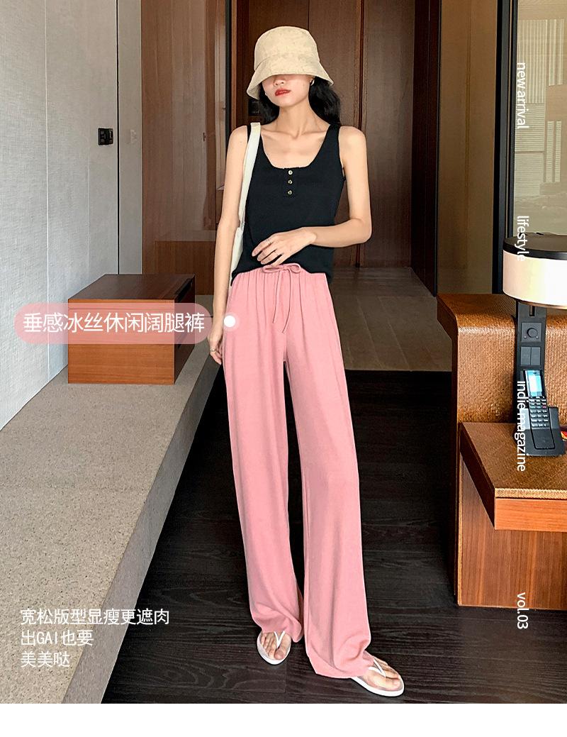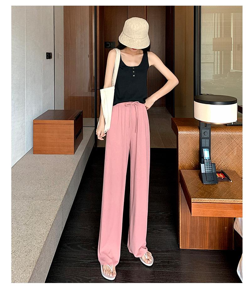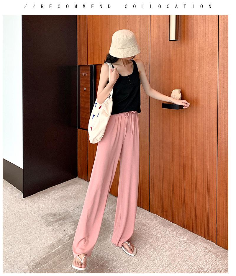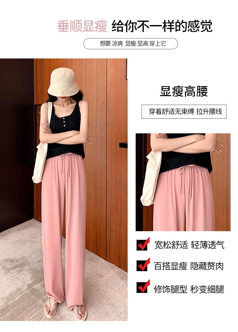 Pantalones anchos de pierna estrecha para mujer en verano, delgados, de cintura alta, holgados, de seda helada, rectos, casuales, ajustados, hasta el suelo para mujer