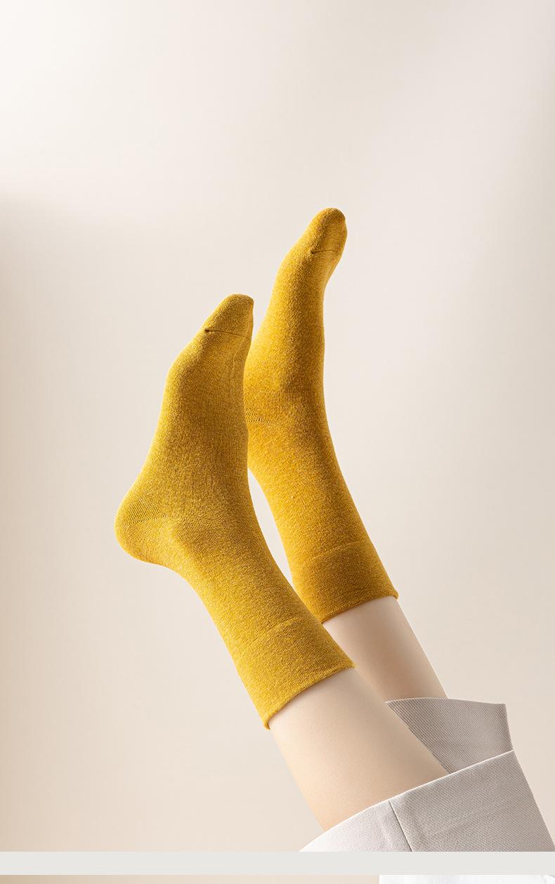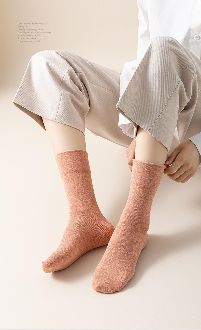 Calcetines de mujer de boca ancha, no ajustados, para otoño e invierno, hasta la mitad de la pantorrilla, calcetines de mujer japoneses de color sólido, combinables, casuales, de moda, deportivos, de algodón absorbente de sudor.