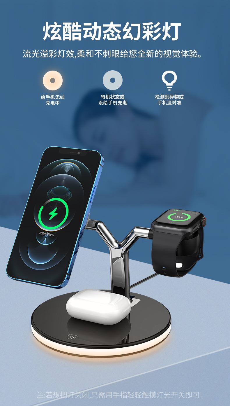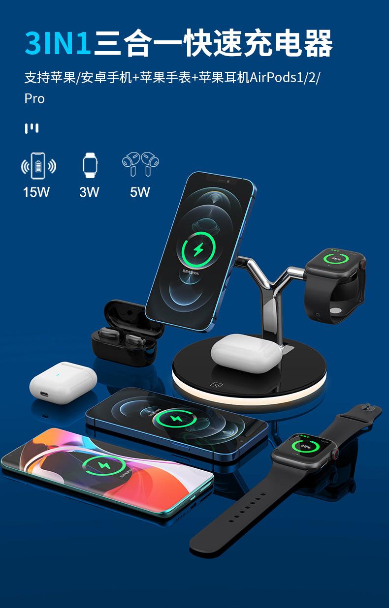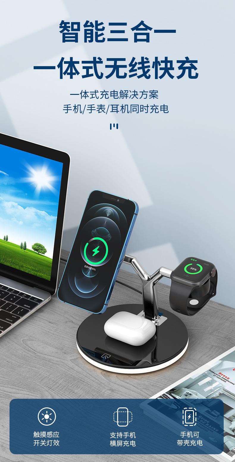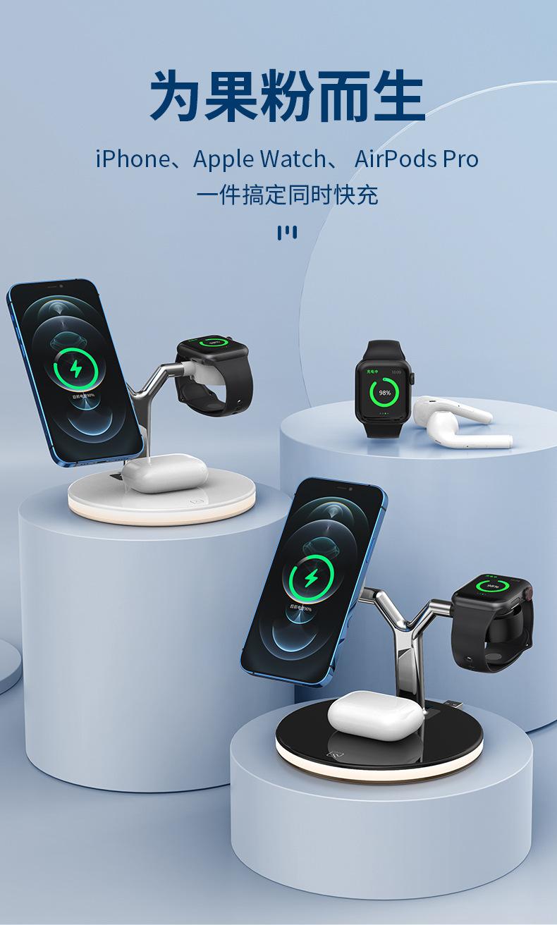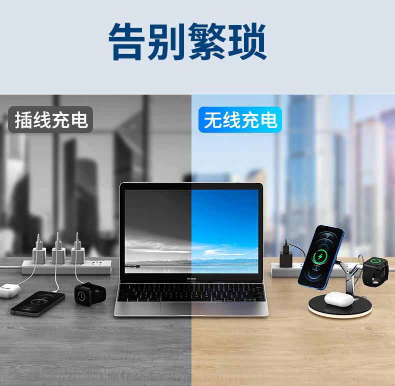 Cargador Inalámbrico Tres en Uno Adecuado para Apple 1413 Carga Rápida Magnética Magsafe Audífonos AirPods iWatch