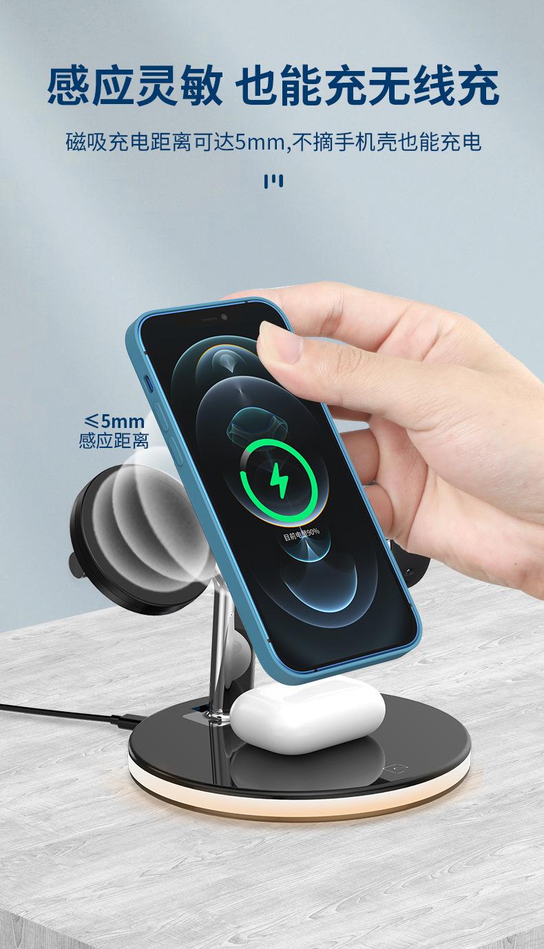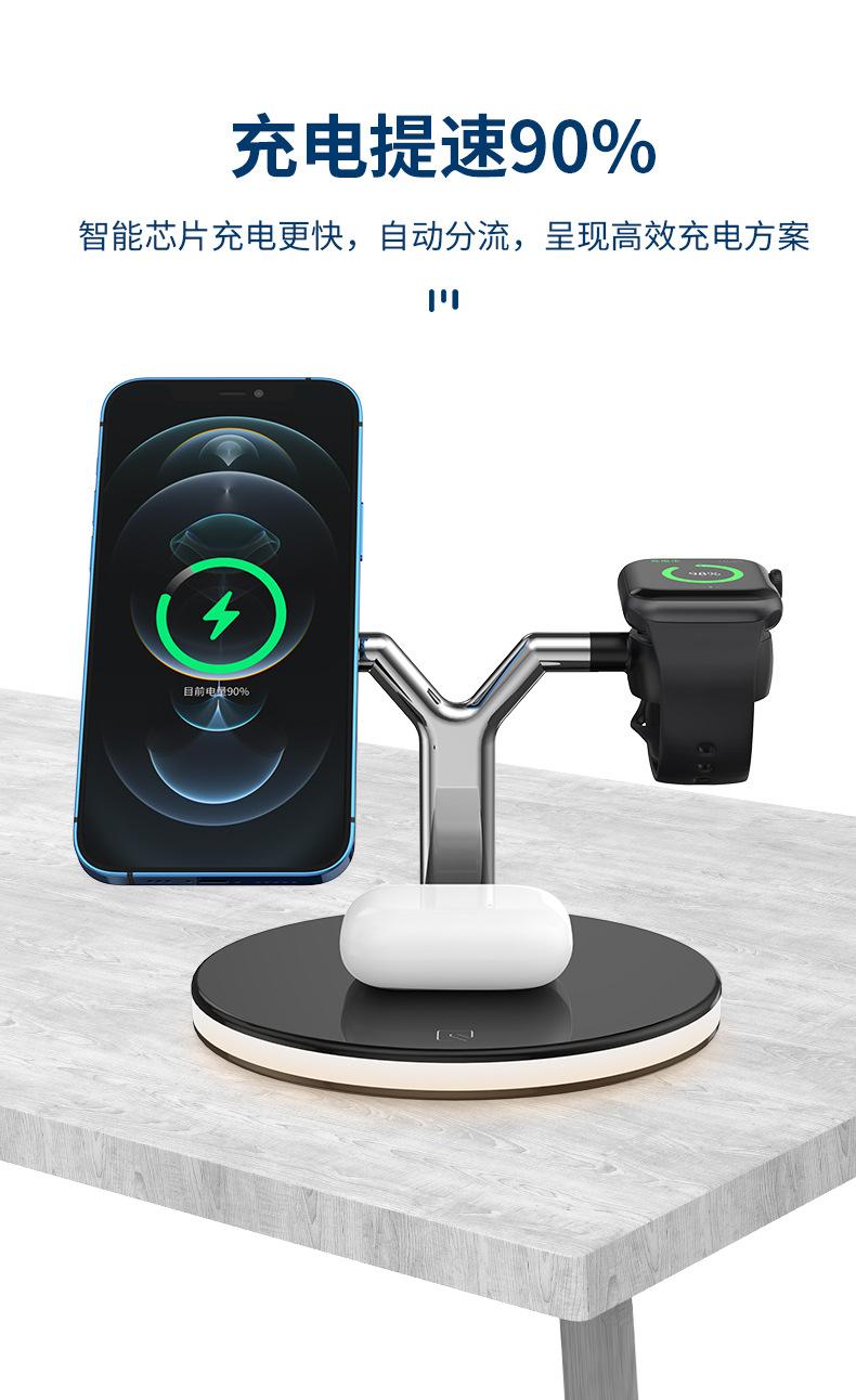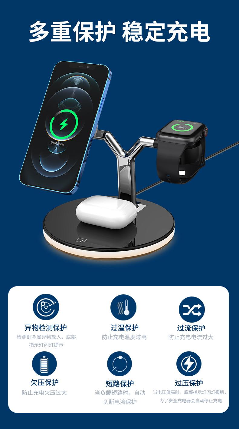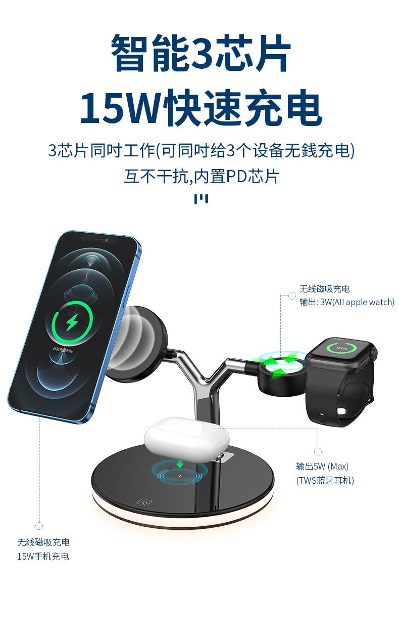 Cargador Inalámbrico Tres en Uno Adecuado para Apple 1413 Carga Rápida Magnética Magsafe Audífonos AirPods iWatch