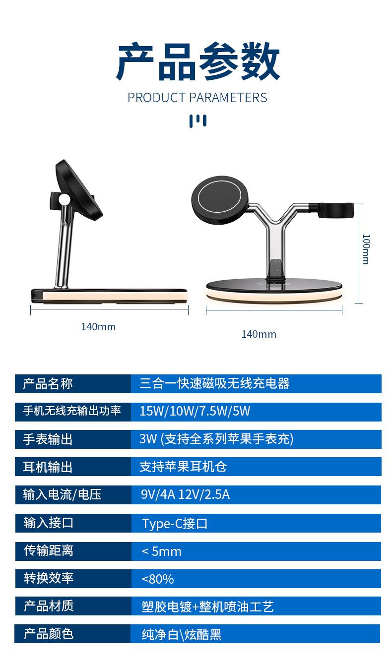 Black Three-in-one wireless charging