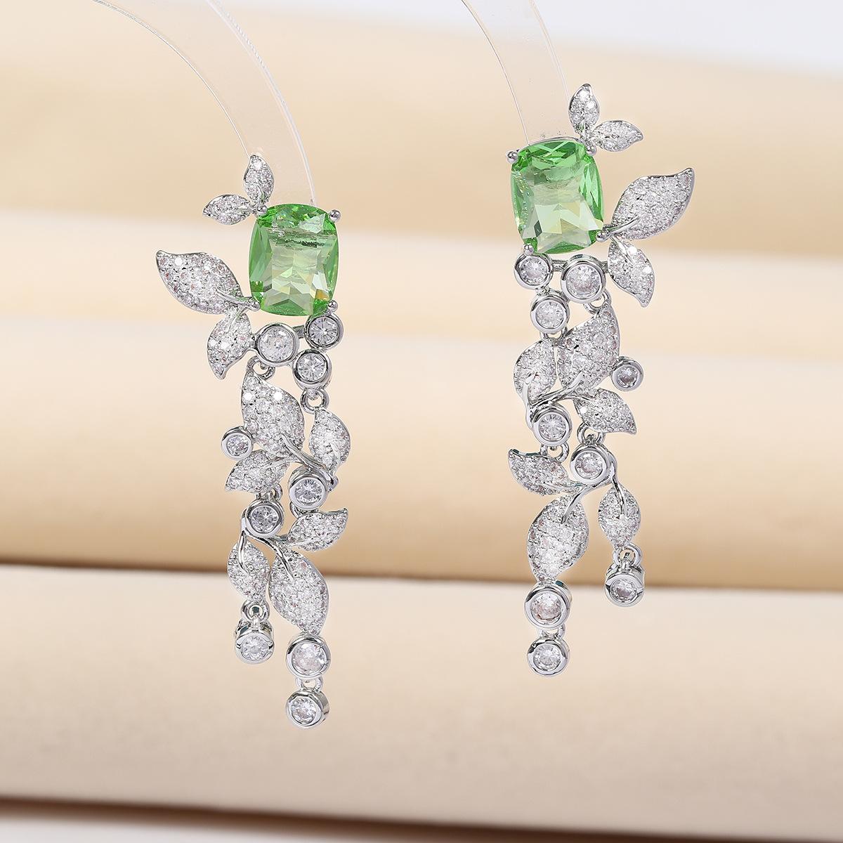 Pendientes de borlas de flores con microincrustaciones de circonita, estilo europeo y americano, elegantes y largos, para mujer, 2023