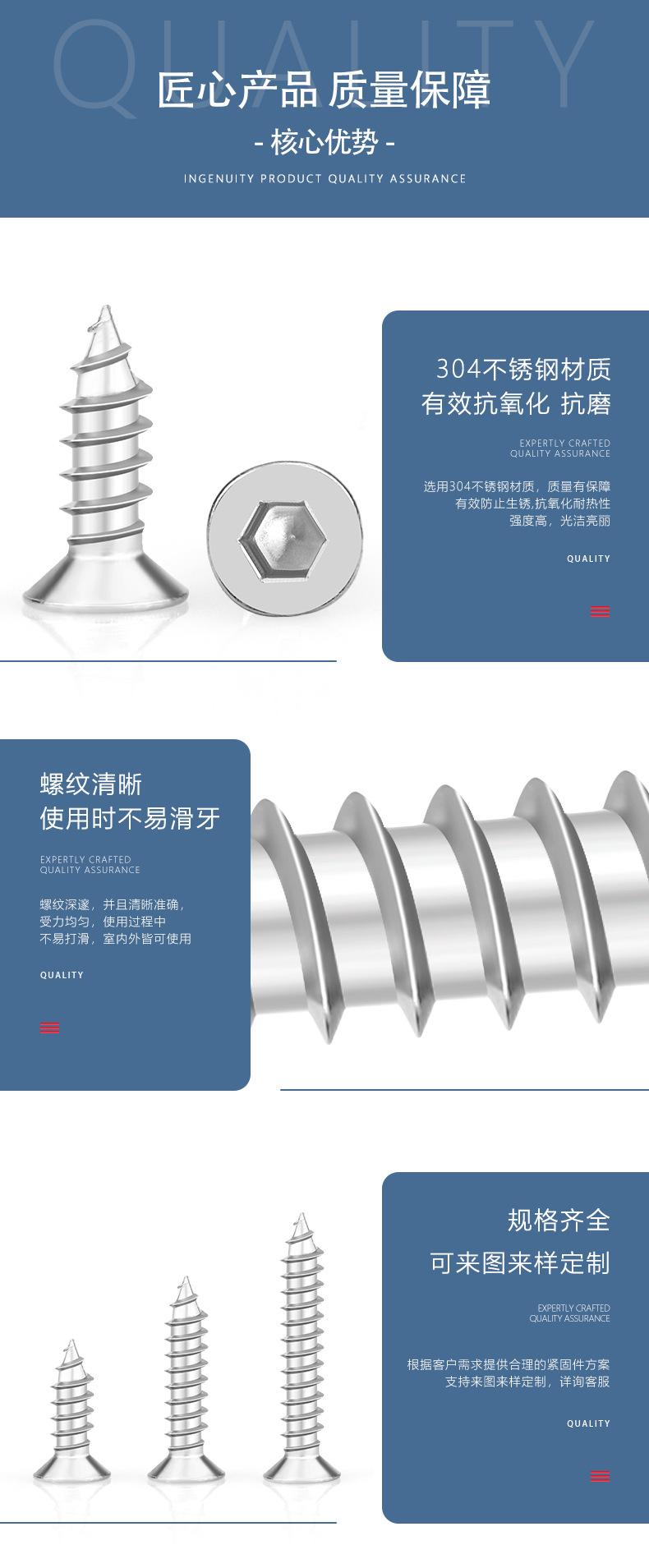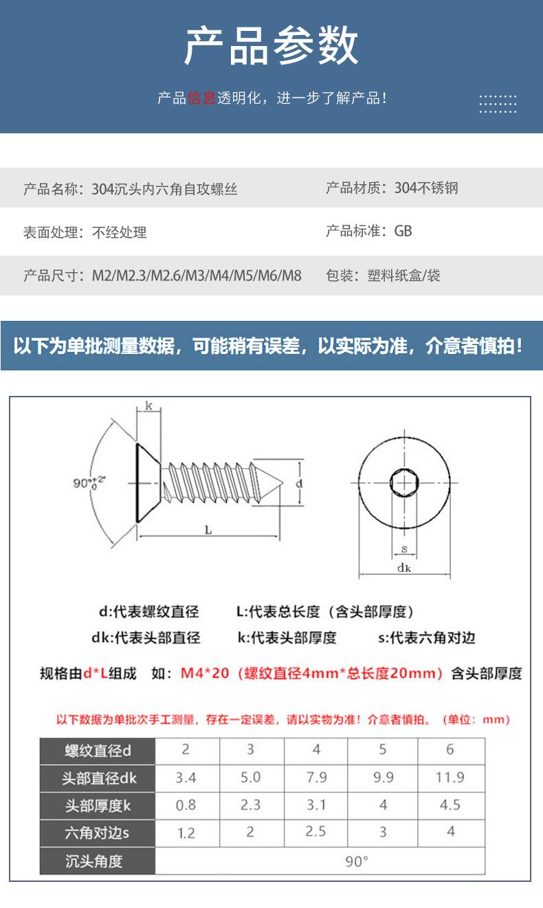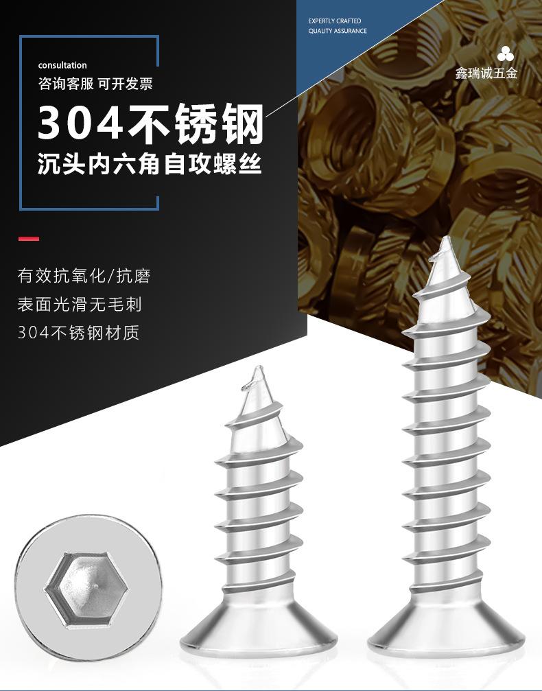 Tornillos autorroscantes de acero inoxidable 304 con cabeza avellanada y hexágono interior, tornillos para madera, cabeza plana, hexágono interior, autorroscantes M2-M8