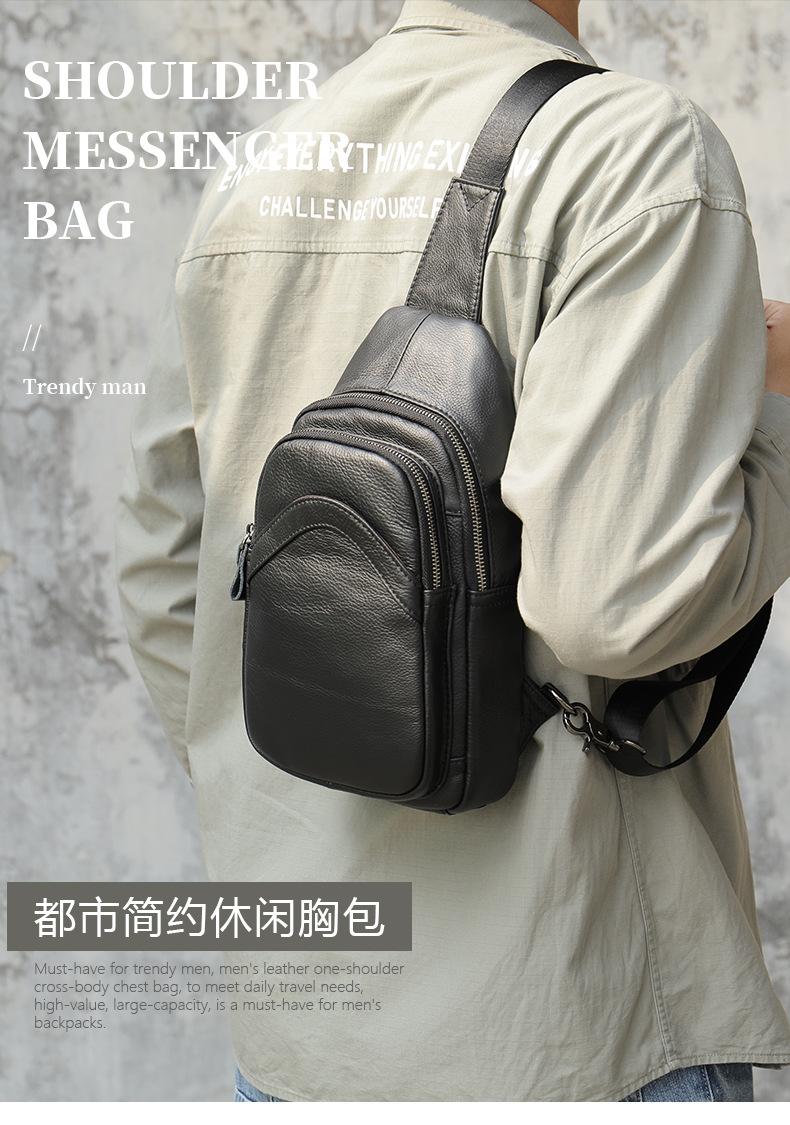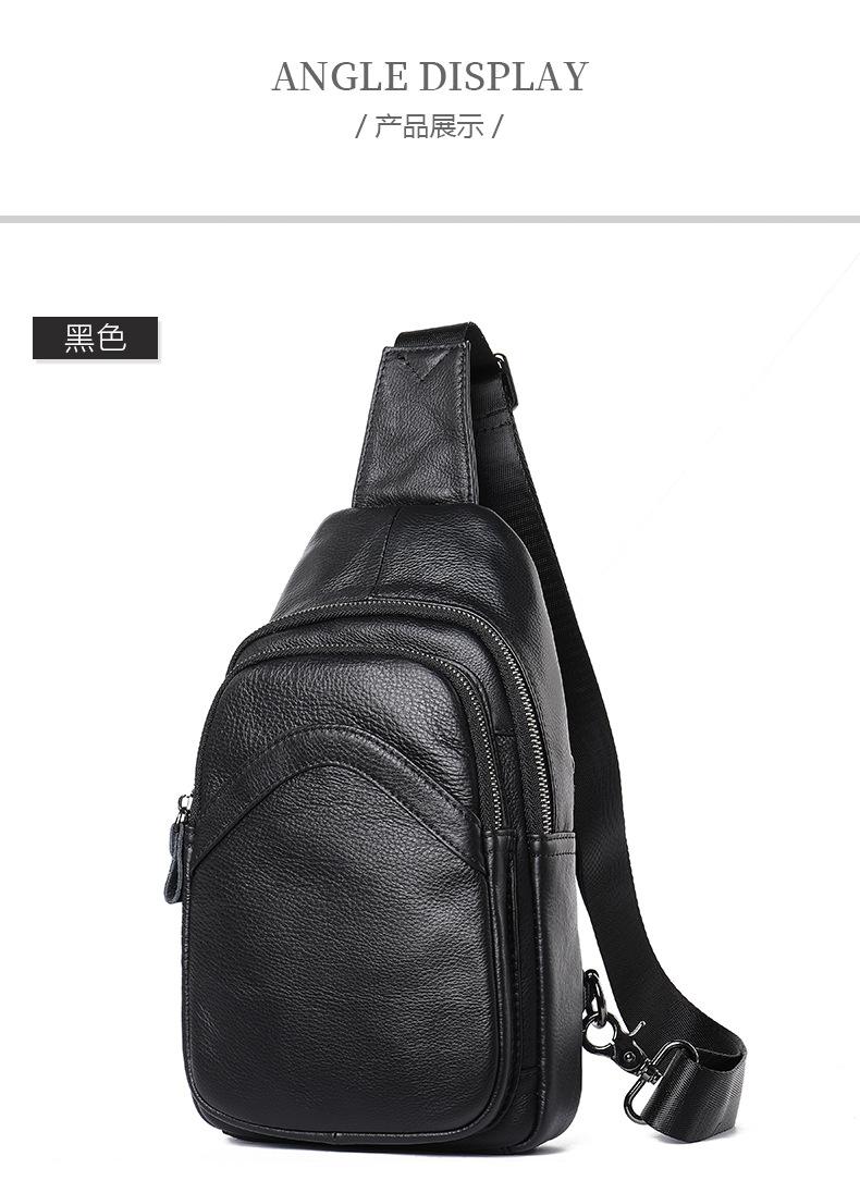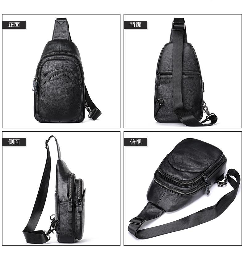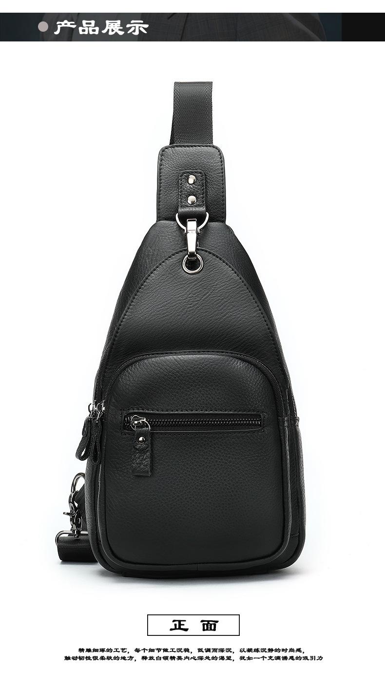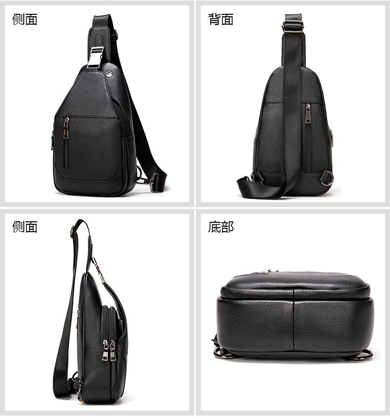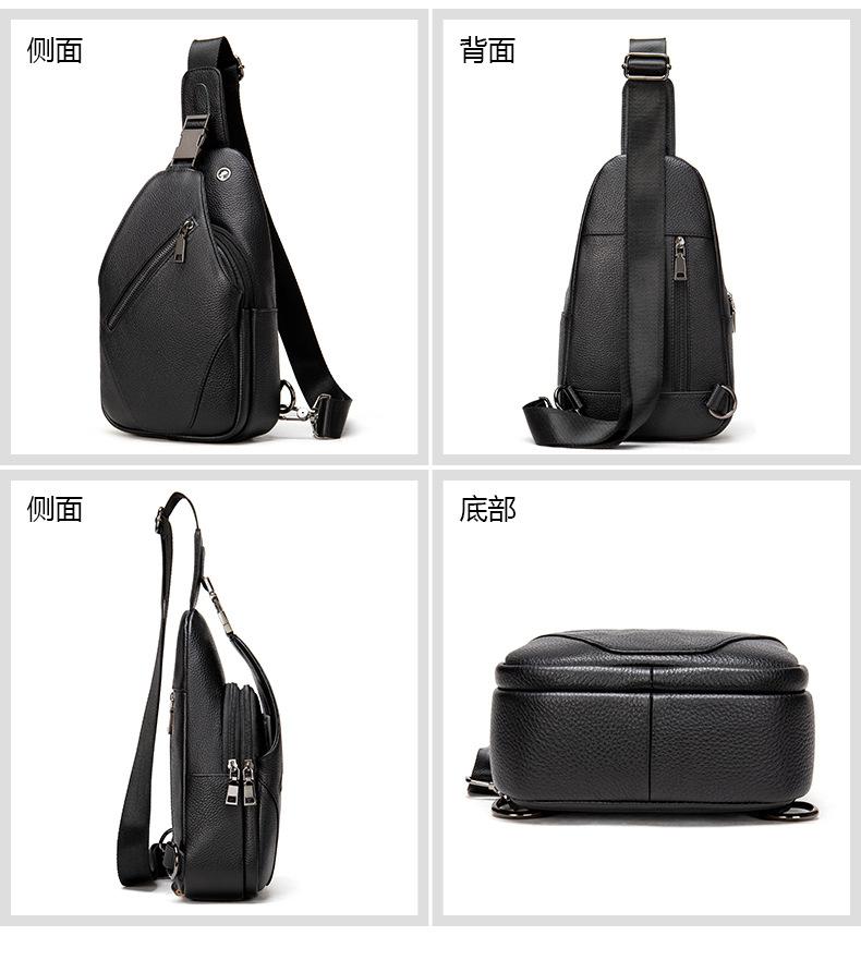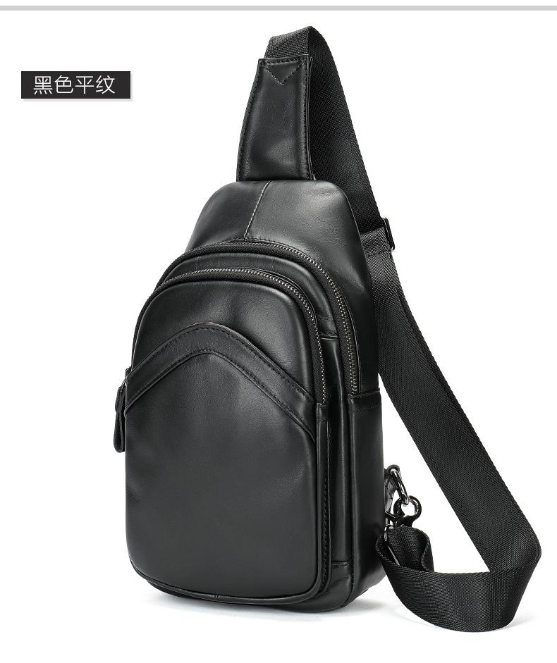 8595 Bolso de Pecho Negro para Hombre Bolso de Pecho de Piel de Vaca de Primera Capa al Mayoreo